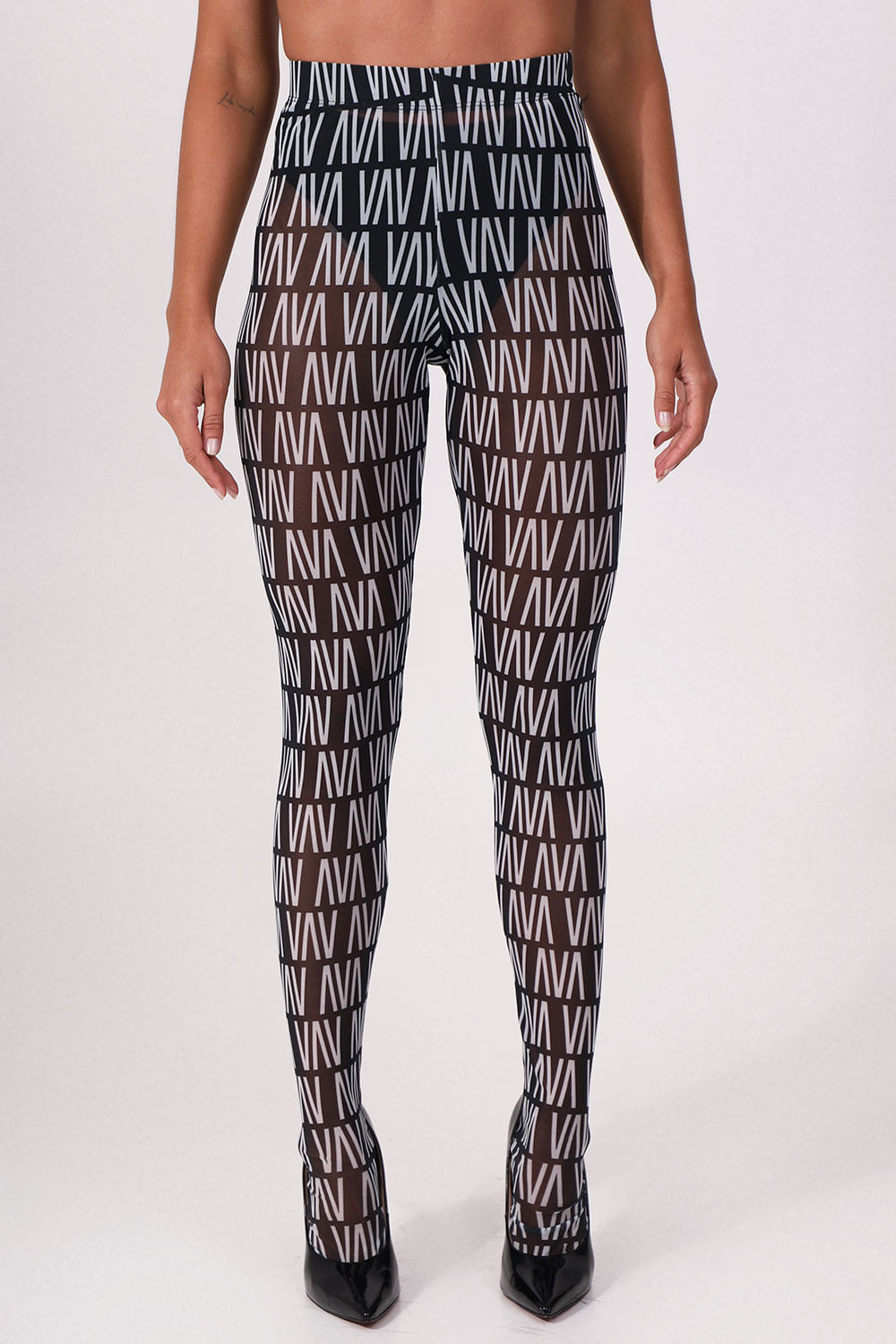 Meia-calça na estampa Graphic Black exclusiva da marca, apresenta um design único e estiloso. Feita de tule, um tecido transparente e leve, esta meia-calça oferece um visual moderno e elegante.