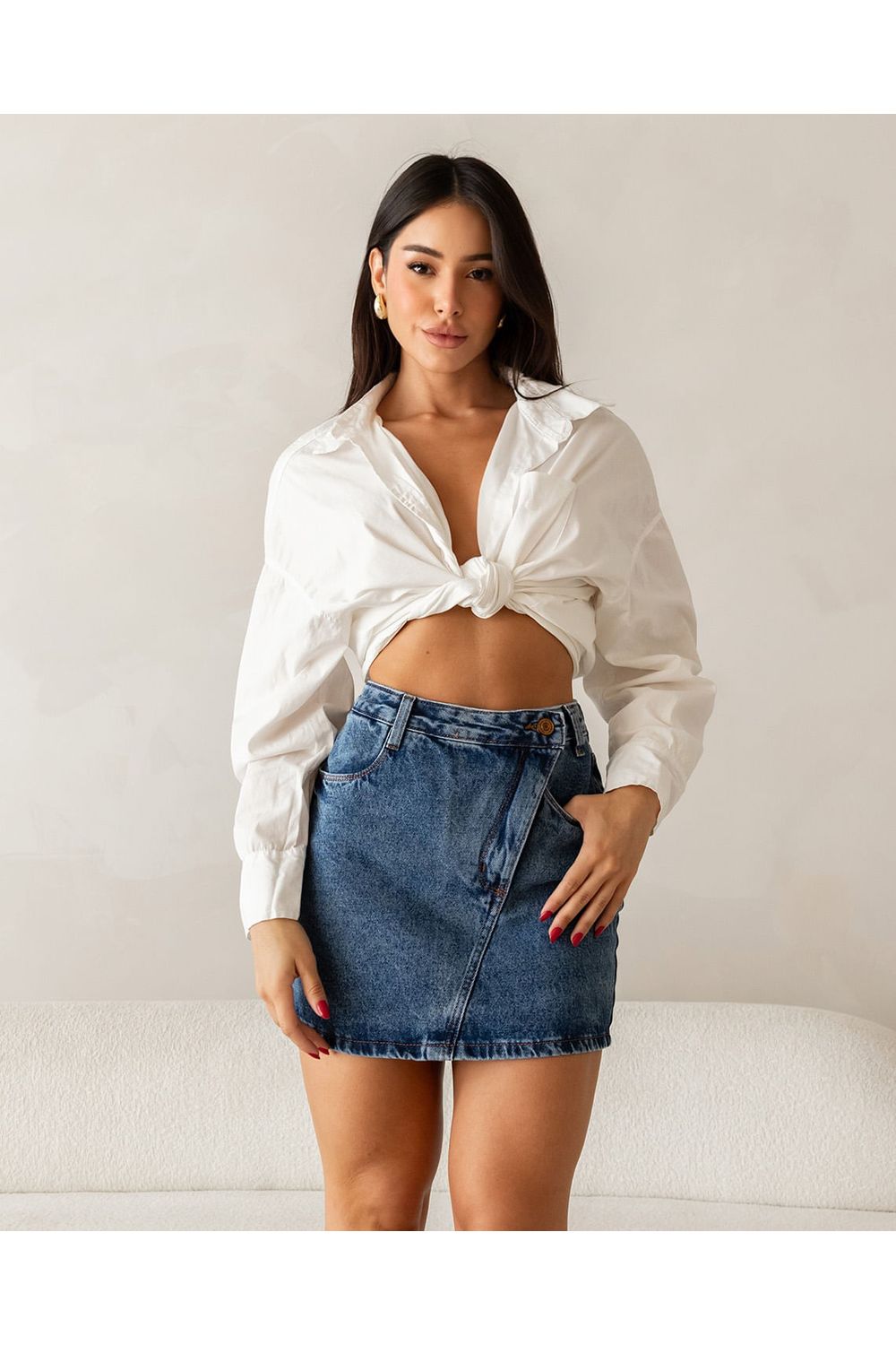 Mini Saia Jeans Fem Cós Irregular 25185 Sky Escuro