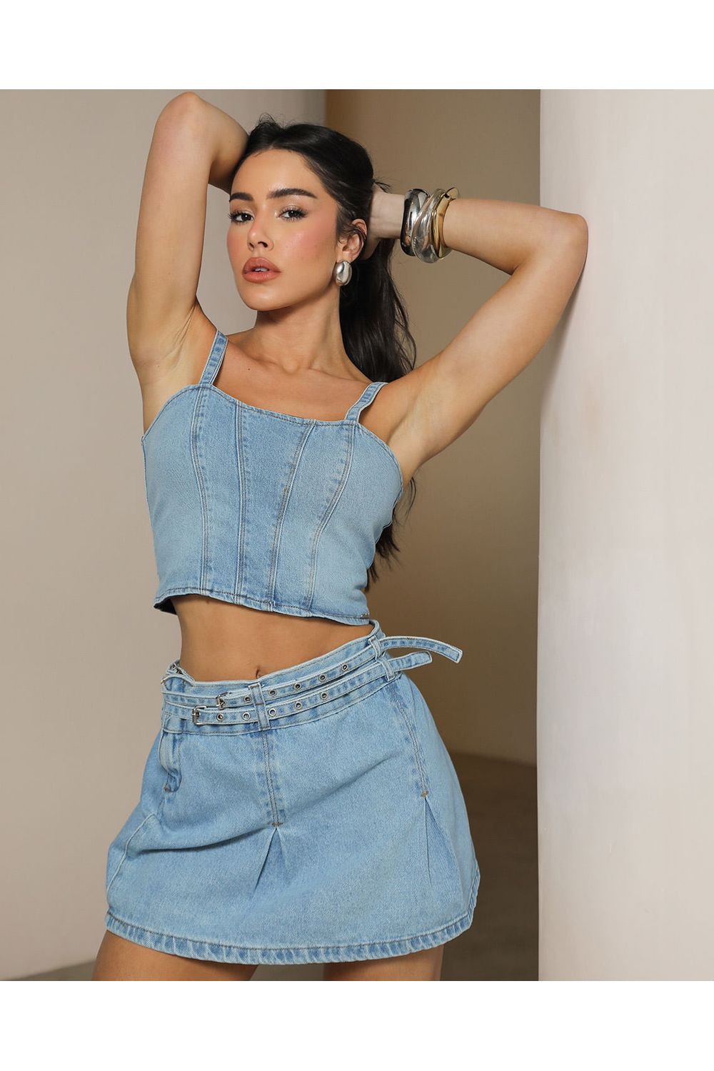 Mini Saia Jeans Feminina com Cinto do Próprio 25079 Clara