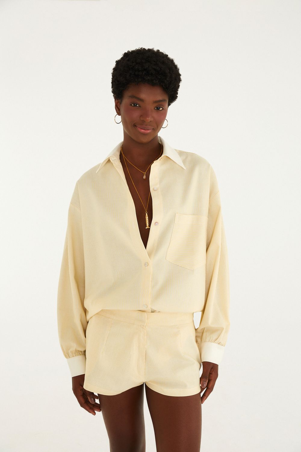 mini short listra alexia. modelagem cintura alta e corte reto, oferecendo leveza e liberdade de movimento. com bolsos laterais discretos e fechamento por zíper, é a escolha perfeita para encontros casuais ou aquele passeio pela cidade. o toque original da farm harmoniza com diversas combinações. FARM Rio, coleção Carioca - inverno 26.-