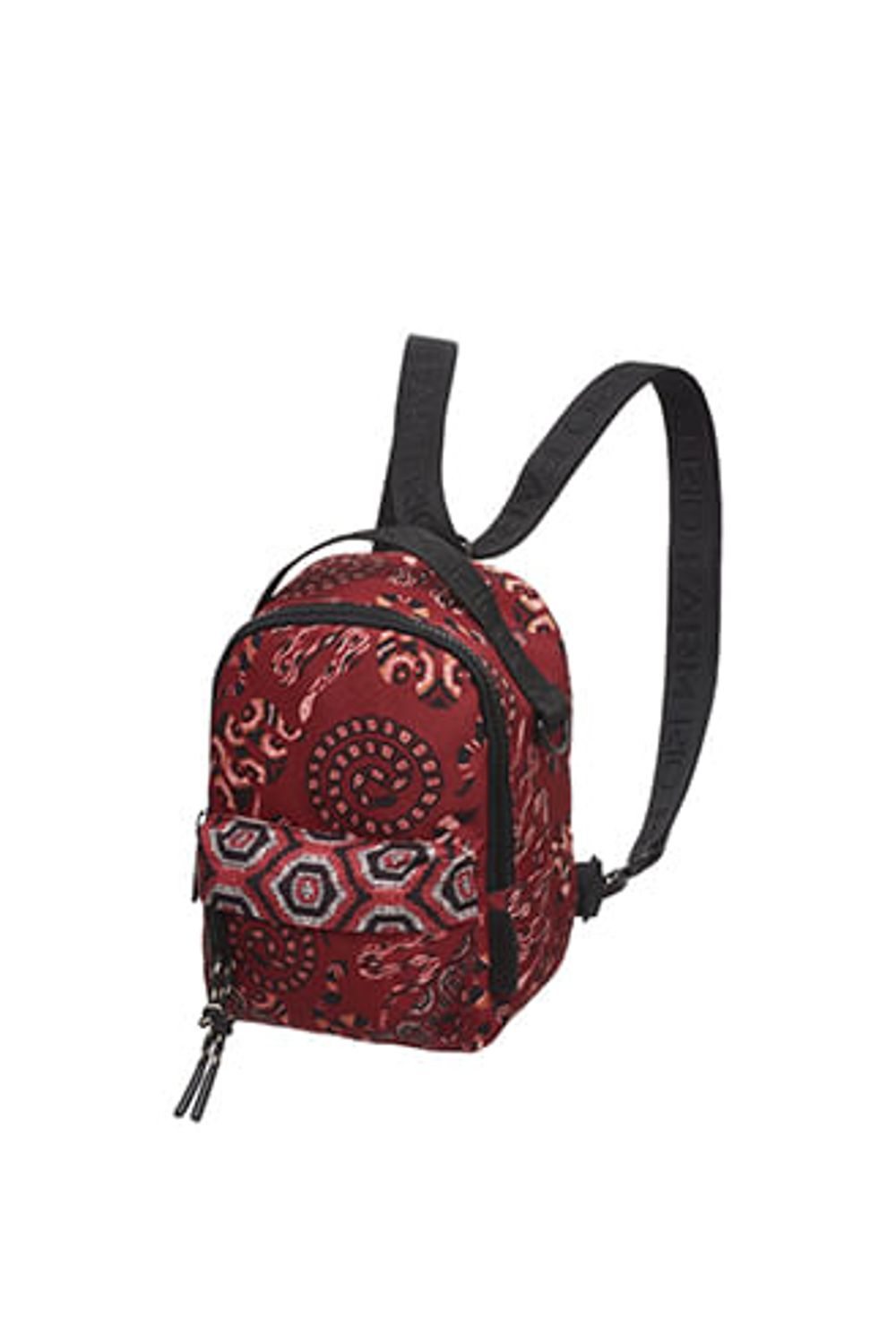 Mini mochila costas estampada confeccionada em poliéster, bolso frontal, alças personalizadas ajustáveis e removíveis, puxadores de zíper personalizados em metal colorido com logo em baixo relevo e corda com ponta emborrachada e etiqueta emborrachada costurada. Medidas: 15 x 11 x 20 cm-