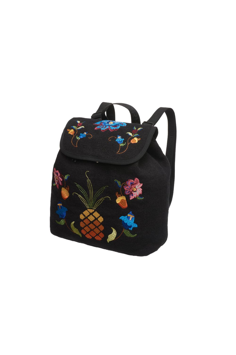 Mochila costas com tampa bordada confeccionada em palha, alças personalizadas ajustáveis, puxadores de zíper personalizados em metal colorido com logo em baixo relevo e cordão de algodão com ponta emborrachada e etiqueta de suede costurada na lateral.-