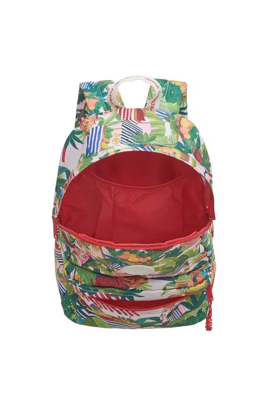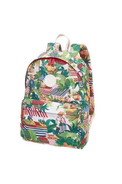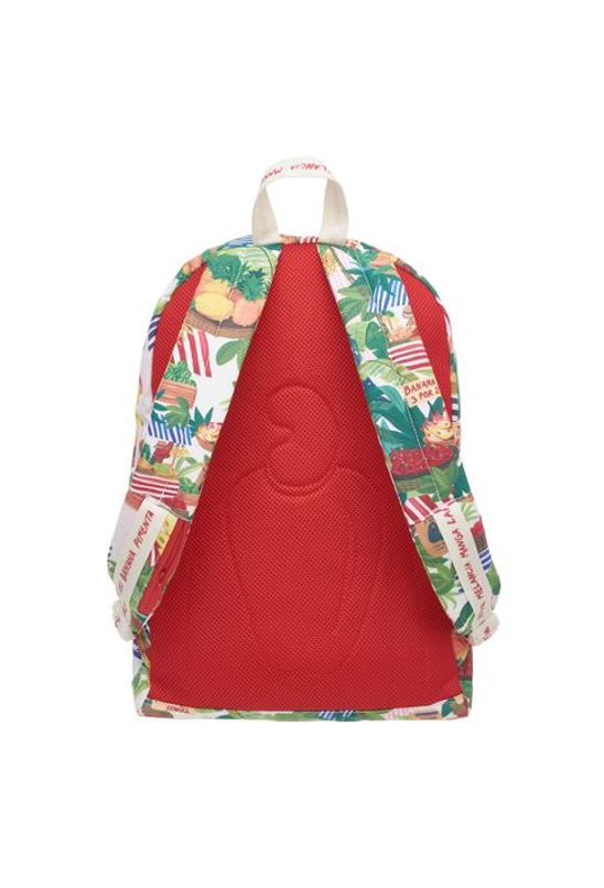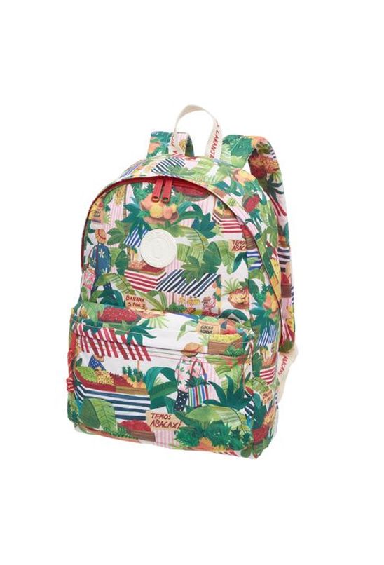 Mochila xodó dia de feira farm, forrada e verde estampada, com um bolso interno e um externo. Fechamento por zíper em conjunto com detalhe em nózinho. Duas alças para ombro e uma para ombro. *as peças podem variar de estampa e tonalidade.