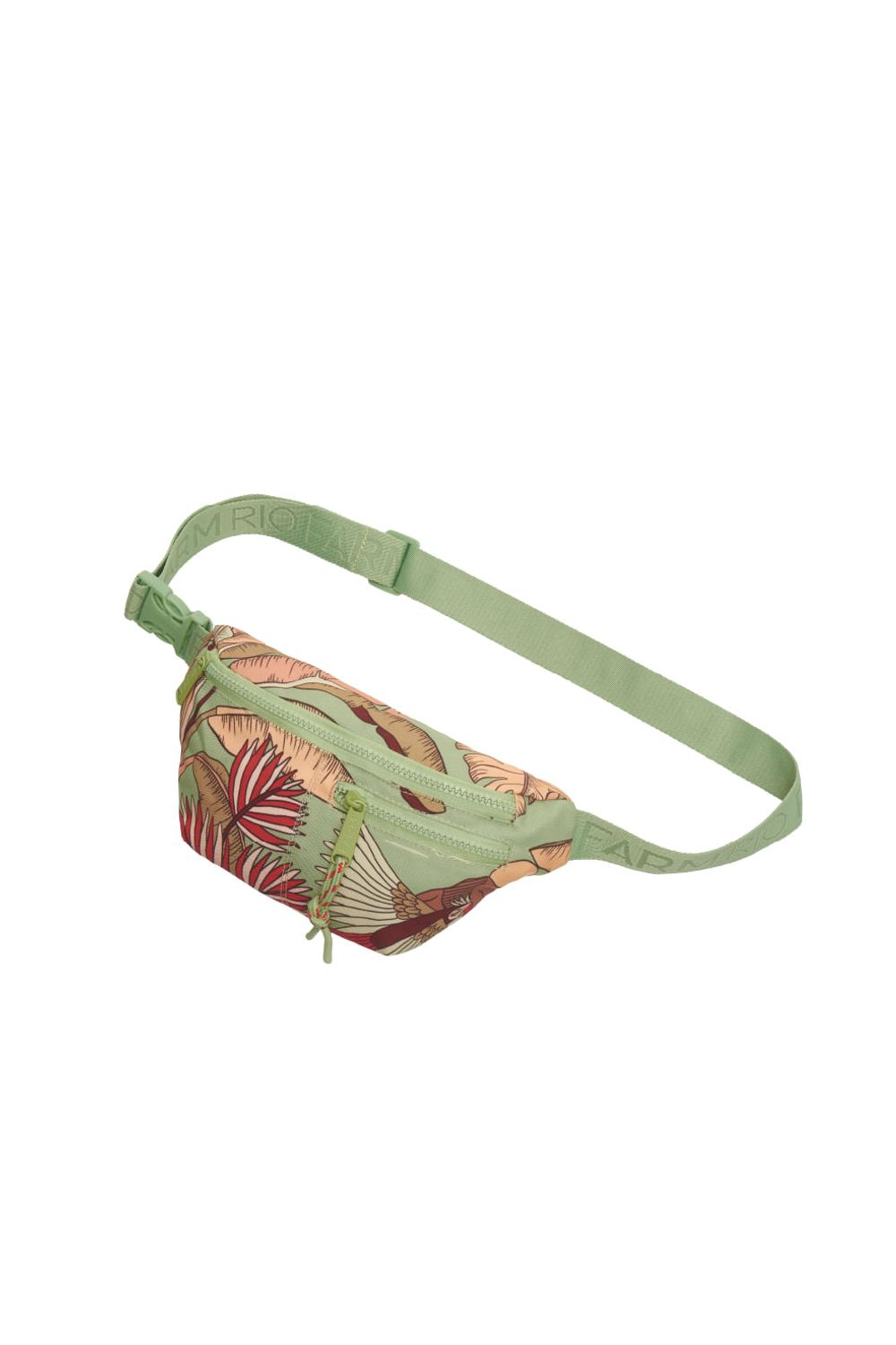 Pochete estampada confeccionada em poliéster com bolso frontal, alça personalizada ajustável com fivela plástica e puxadores de zíper personalizados em metal colorido com logo em baixo relevo e corda com ponta emborrachada.-