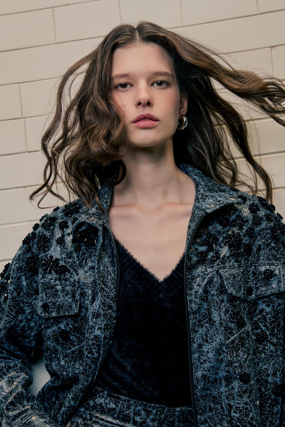 Jaqueta Jeans Feminina Cropped com Aplicação 24413 Clara