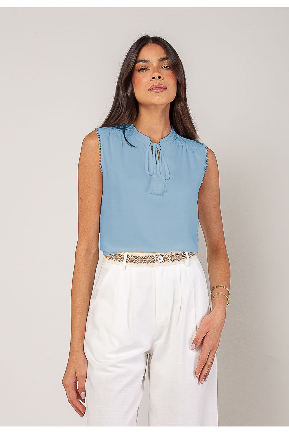 Regata Alfaiataria Com Amarração E Detalhe de Pompons Azul Salvatore