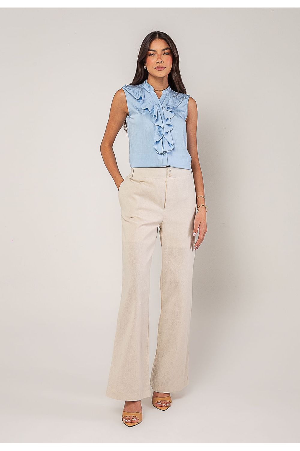 O charme da peça está nos babados delicados no decote, que criam um caimento elegante e valorizam o colo de forma sutil.
