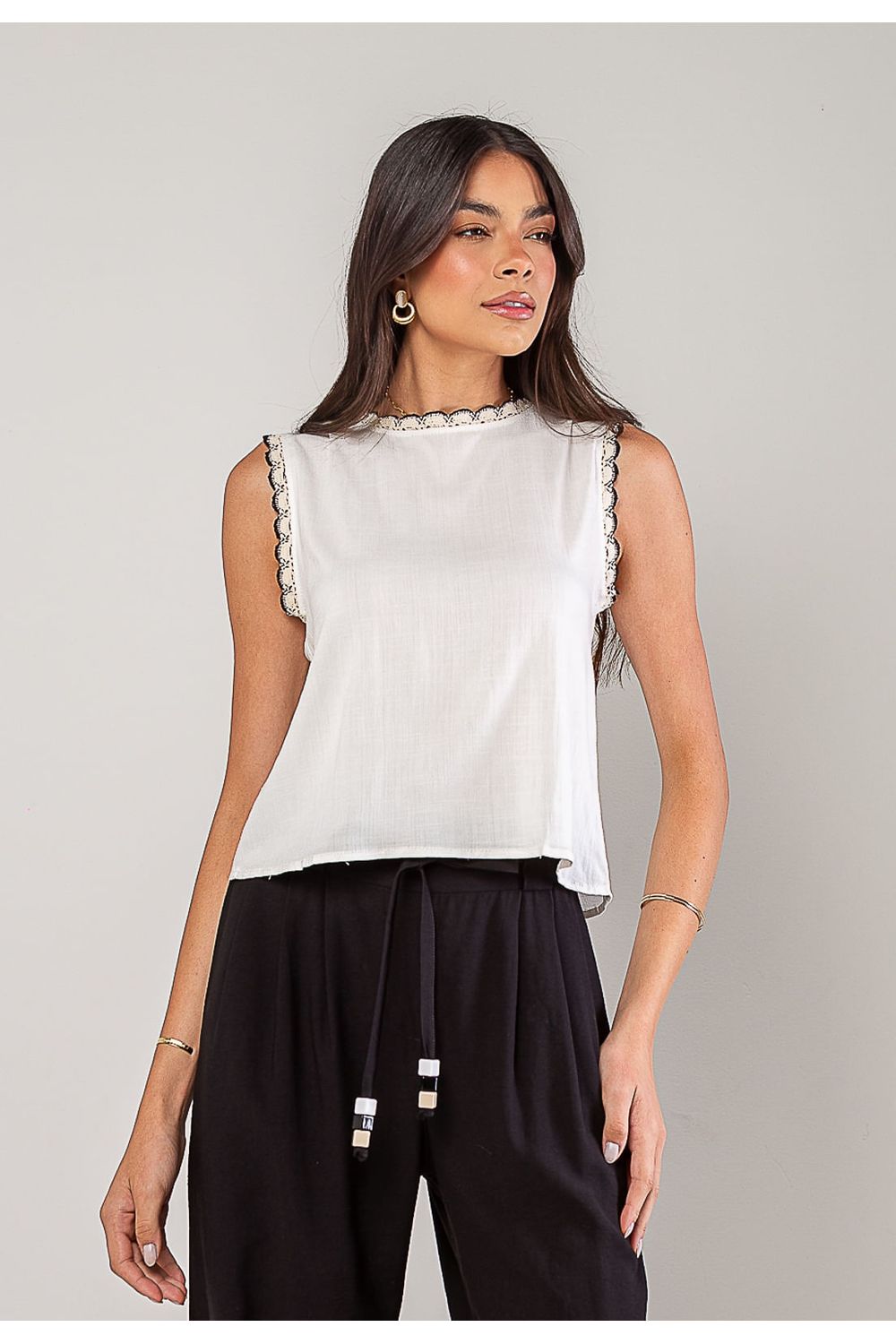 Regata Alfaiataria Com Renda nas Cavas E Gola Branco Salvatore
