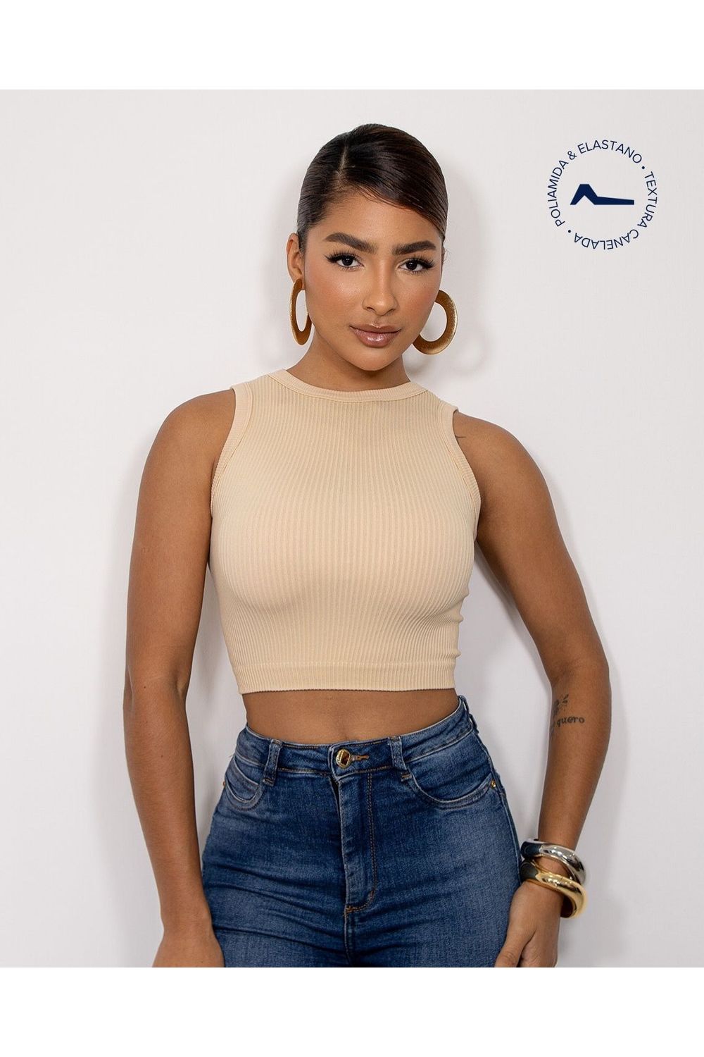Regata Cropped Feminina Canelada Poliamida 99225 Bege