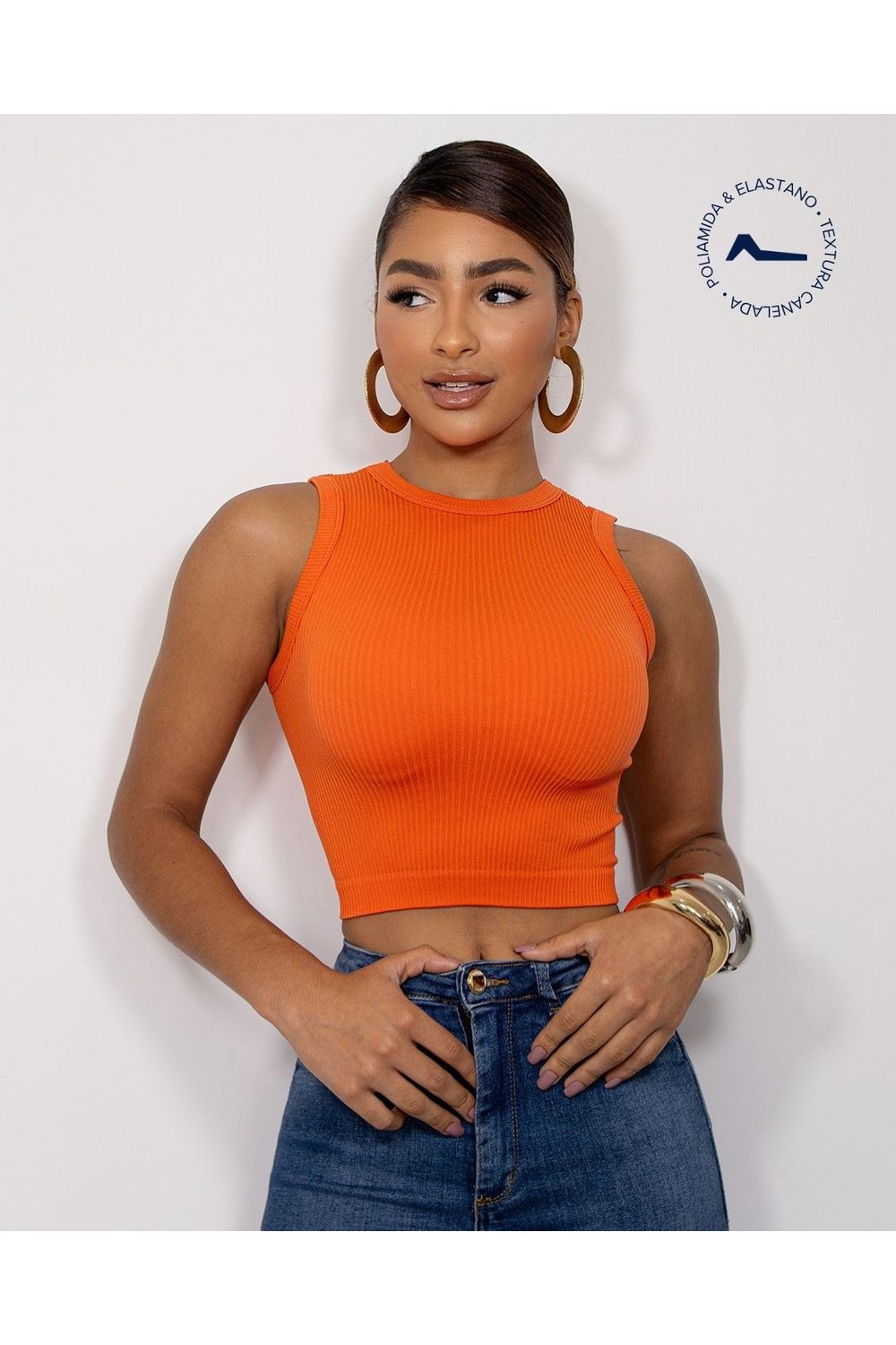 Regata Cropped Feminina Canelada Poliamida 99225 Laranja