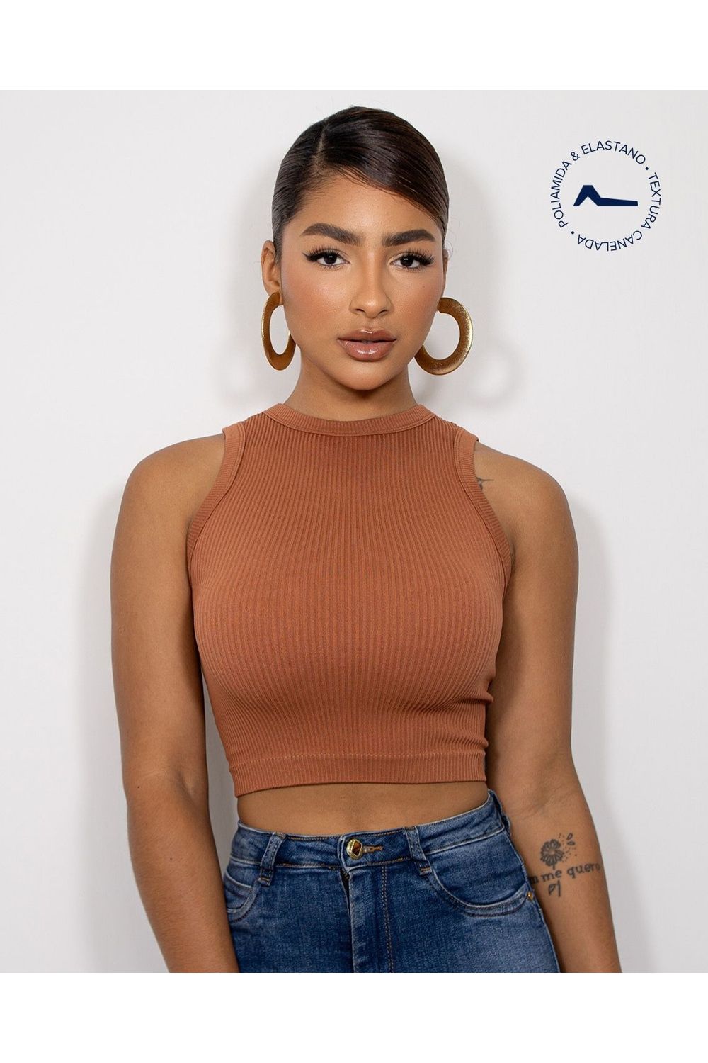 Regata Cropped Feminina Canelada Poliamida 99225 Marrom