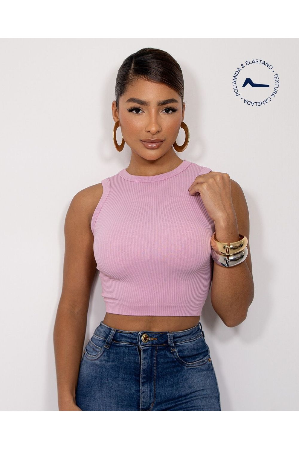 - Regata Cropped Feminina Tecido Canelado