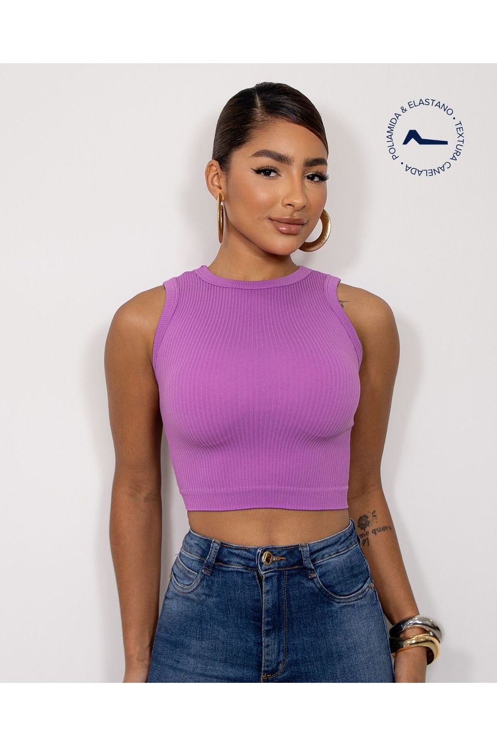 Regata Cropped Feminina Canelada Poliamida 99225 Roxo