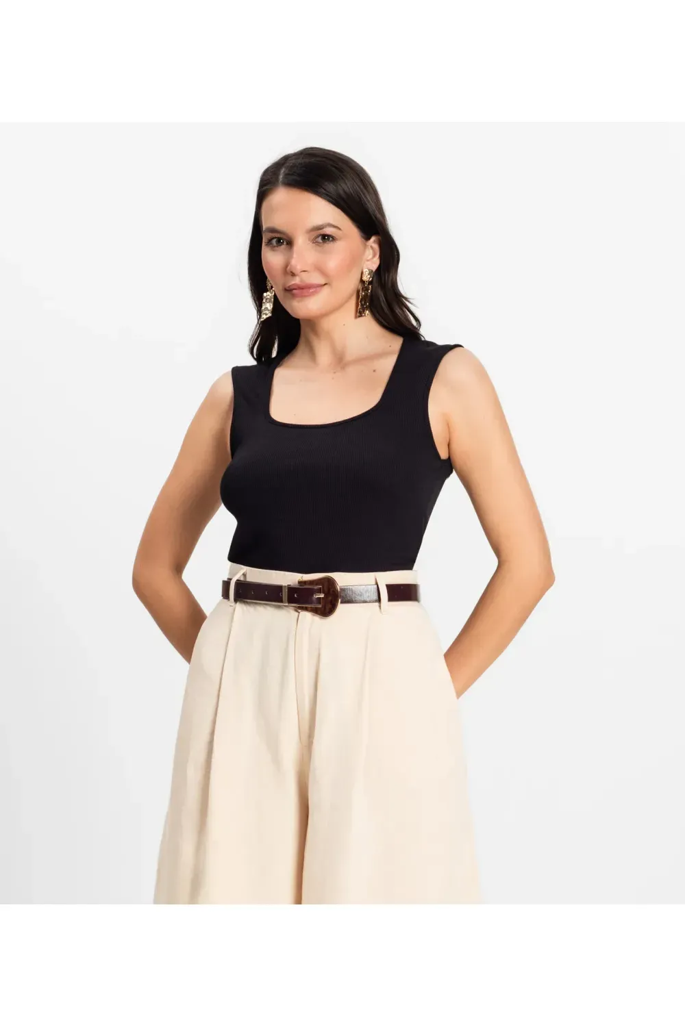 Regata Feminina em Ribana de Viscose Rovitex Preto
