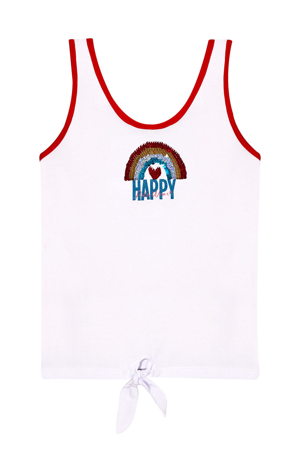 Regata Feminina Infantil Estampa Happiness Polo Wear Branco