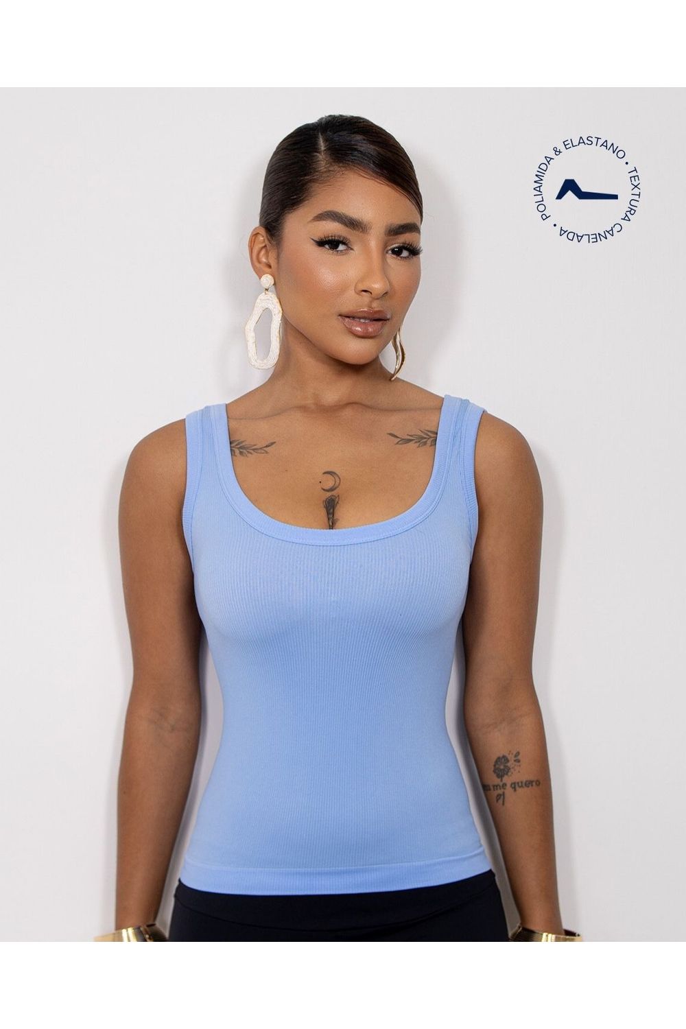 Regata Feminina Poliamida Canelada 99193 Azul Claro