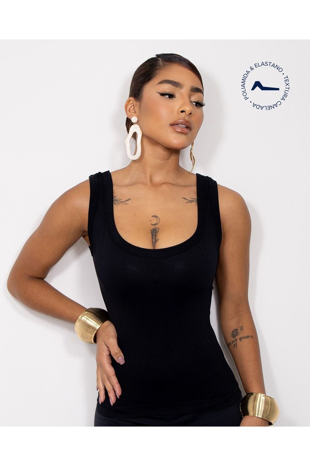 Regata Feminina Poliamida Canelada 99193 Preto