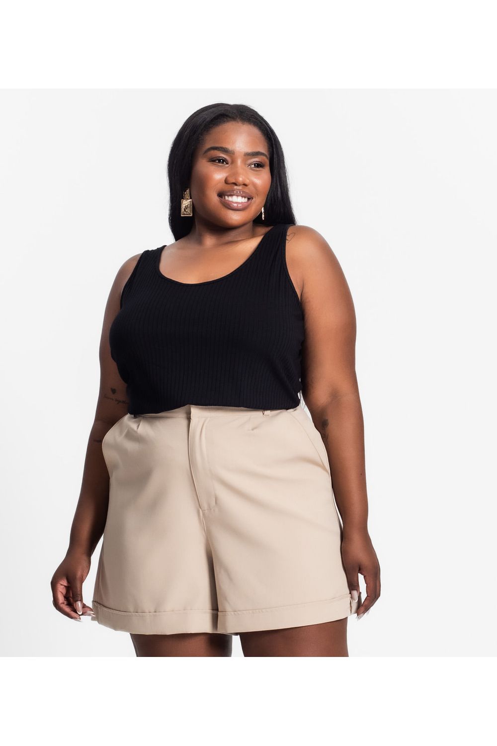 Regata Plus Size Em Ribana Canelada Secret Glam Preto