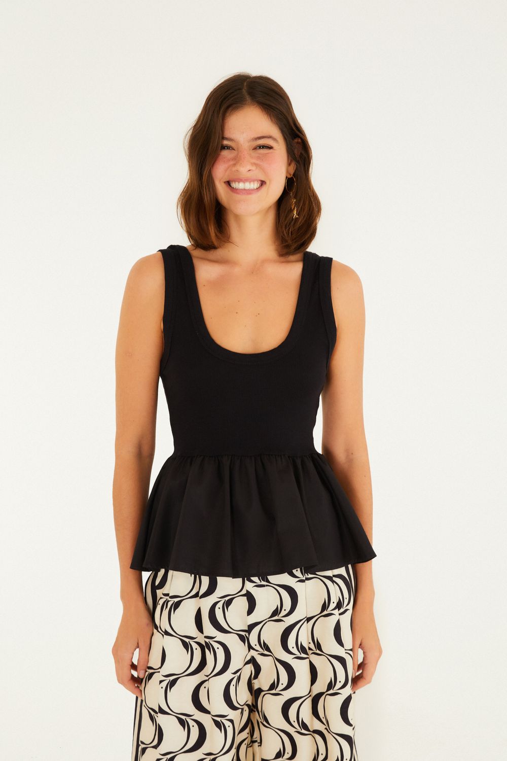regata rib com tecido. com decote arredondado e alças médias, traz um toque de originalidade ao design contemporâneo. a modelagem ajusta o tronco com leve efeito peplum, conferindo charme ao visual. perfeita para uso casual ou eventos especiais, é uma peça curinga no guarda-roupa. FARM RIO original - alto verão 26.-