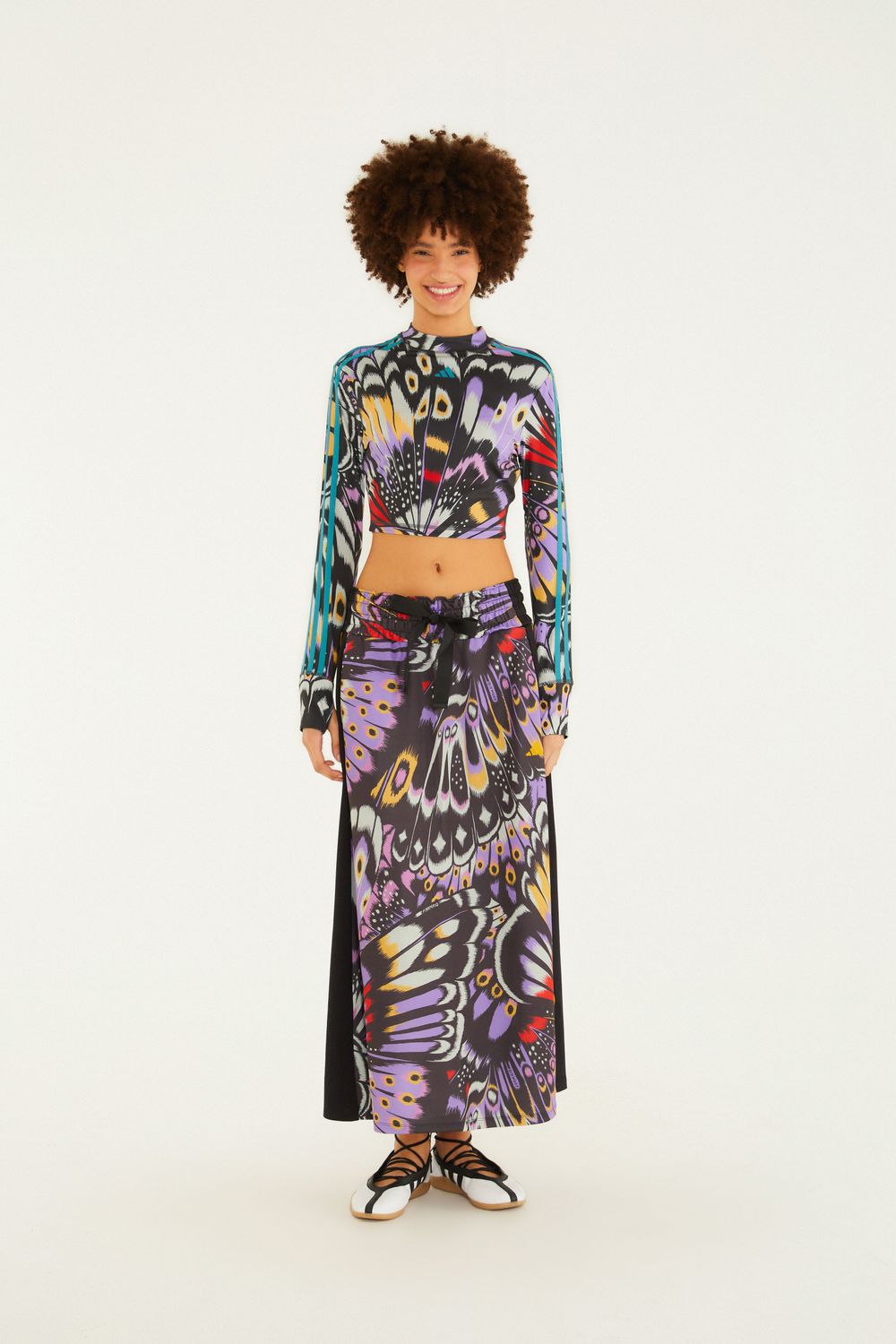 saia adidas colorfly lilac tem modelagem envolvente com cintura ajustada e caimento suave até o tornozelo. o tecido fluido proporciona uma sensação leve, ideal para um dia casual ou um evento descontraído. detalhes sutis elevam o design, tornando esta peça uma escolha perfeita para diversas ocasiões. este produto faz parte da parceria adidas <3 FARM Rio.-