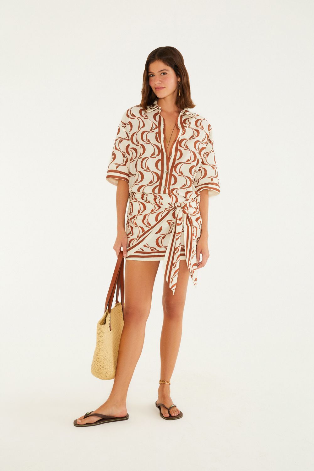 saia amarração estampada peixe copa. possui um design único com amarração frontal ajustável, permitindo um caimento versátil e personalizado. o tecido leve proporciona conforto em dias quentes, enquanto a estampa exclusiva transmite originalidade. perfeita para passeios à beira-mar ou ocasiões casuais. FARM RIO original - alto verão 26.-