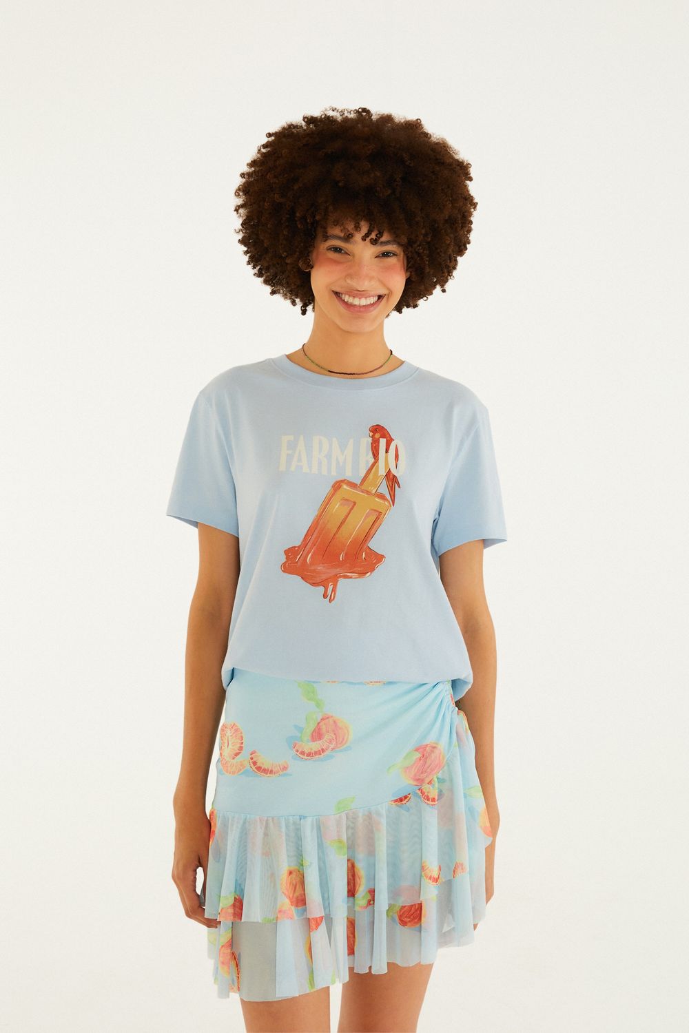 saia curta tule babado estampada tangerina. uma peça versátil que combina leveza e movimento a qualquer look. com cintura ajustada, fechamento lateral discreto e babados delicados, ela traz um toque original para o seu guarda-roupa. perfeita para ocasiões casuais ou um passeio no parque. FARM RIO original - alto verão 26.-