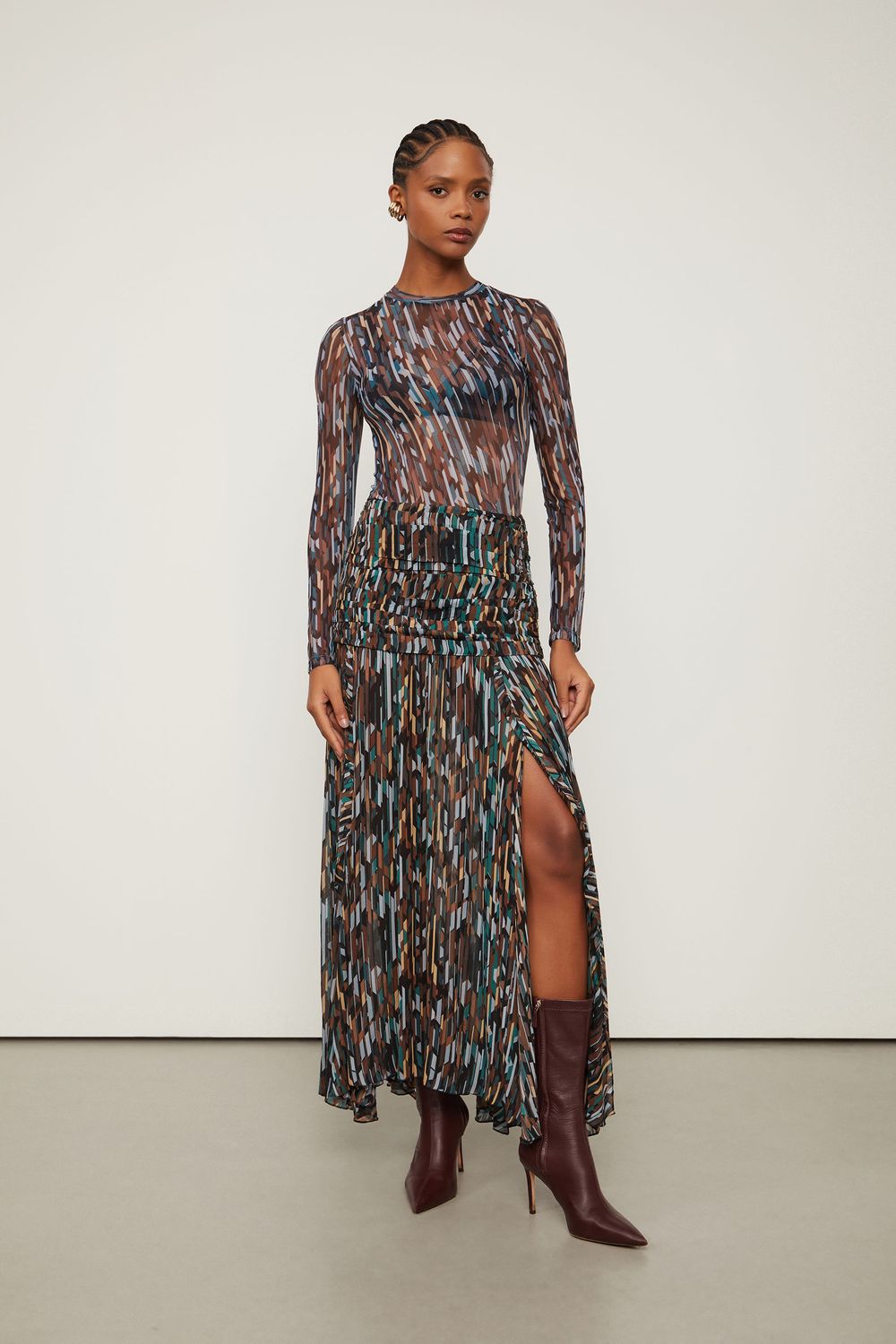 Saia De Georgette Leve Longa Pala Larga Estampada