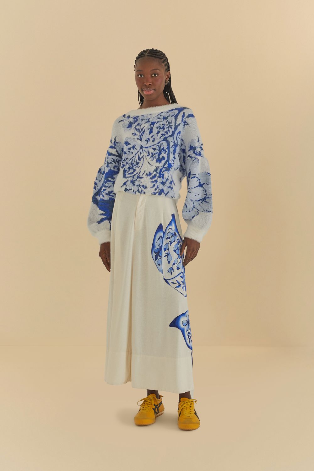 saia estampada borboleta de porcelana. com modelagem evasê que flui suavemente, essa peça é perfeita para momentos especiais e casuais. detalhes minuciosos enriquecem a estampa, trazendo um toque artístico e único. combina com diversas opções de blusas, proporcionando versatilidade. FARM RIO original - inverno 25.-