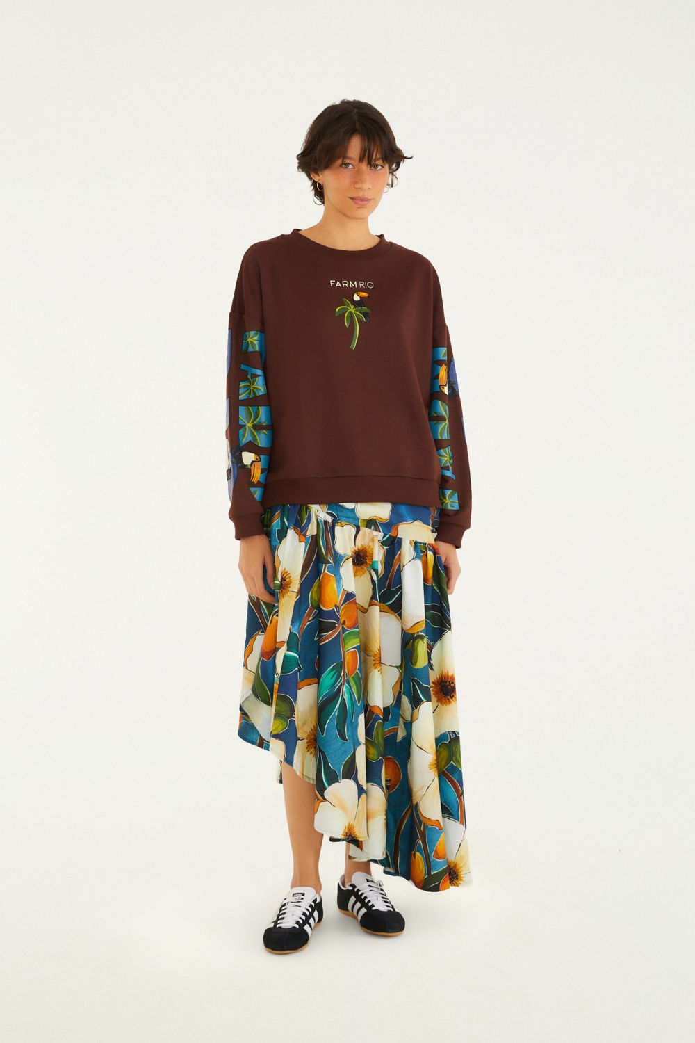 saia estampada jardim litoral. com um corte fluido e movimento leve, esta saia traz cintura alta e babados que elevam qualquer composição. perfeita para ocasiões casuais ou um passeio à beira-mar, é a peça indispensável para um visual cheio de personalidade. FARM RIO original - verão 26.-