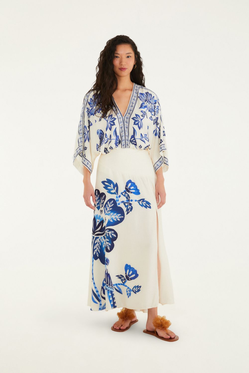 saia fenda estampada paraíso. modelagem midi com fenda lateral que traz fluidez e leveza aos movimentos. o cós é ajustável, garantindo conforto ao vestir. a estampa exclusiva e cheia de personalidade acrescenta um toque especial ao visual. perfeita para ocasiões casuais ou um encontro especial à beira-mar. FARM RIO original - verão 26.-