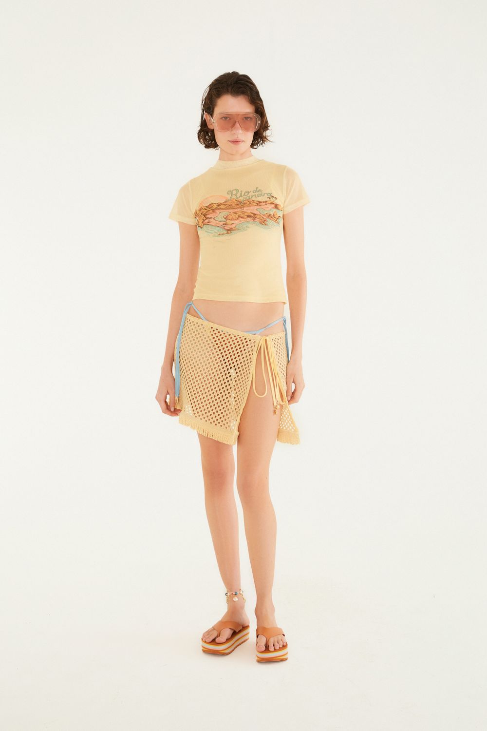 saia guipure tela. traz um design inovador com transparência na medida certa, apostando na originalidade dos detalhes em guipure. com comprimento mini e ajuste lateral por amarração, é perfeita para momentos casuais ou uma saída descontraída à beira-mar. um toque charmoso e autêntico para seu guarda-roupa. FARM RIO original - alto verão 26.-