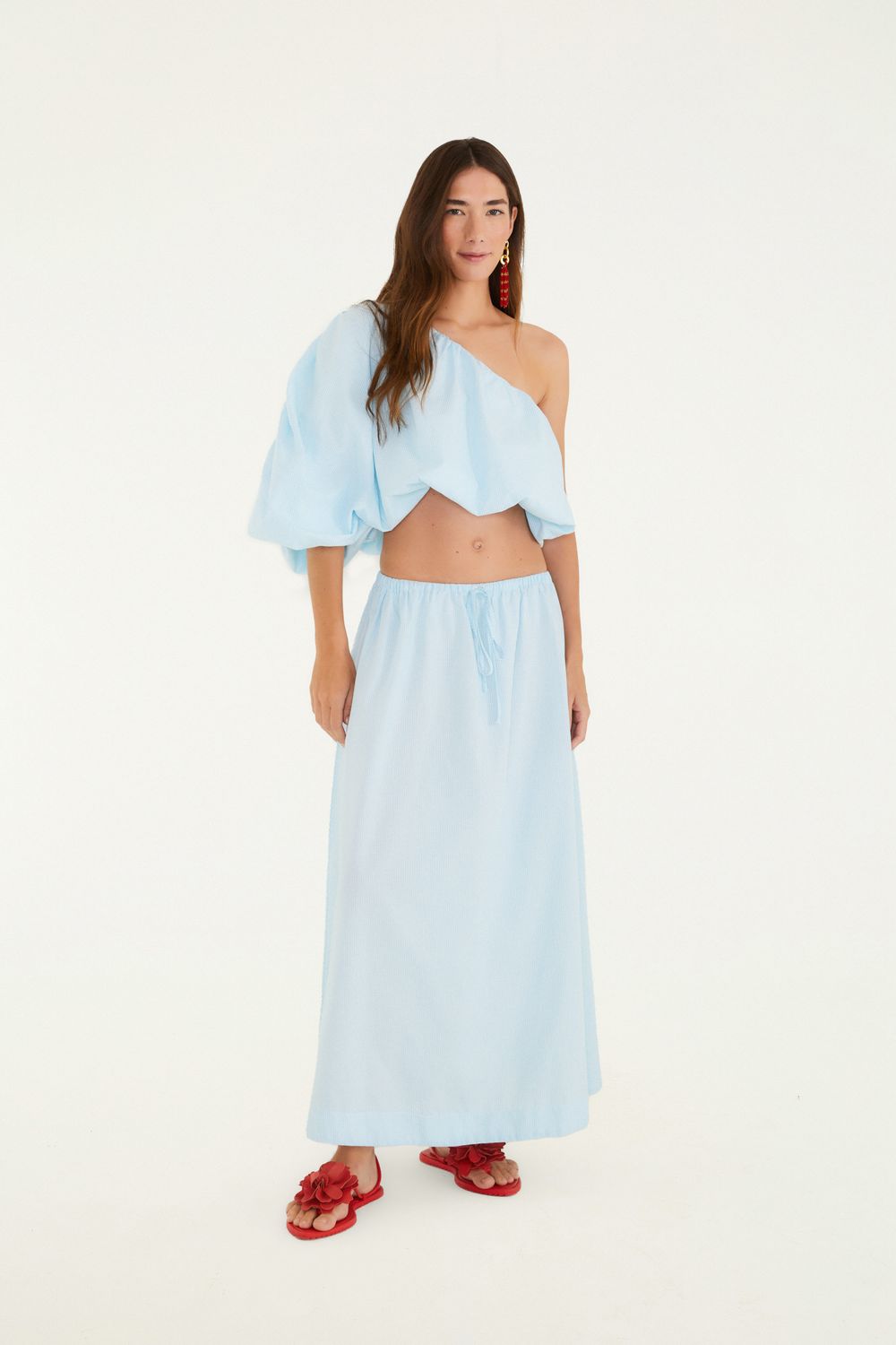 saia listra. confeccionada para atender ao dia a dia com charme e personalidade, a modelagem fluida se adapta a diferentes ocasiões, do passeio ao encontro casual. o caimento solto oferece conforto, enquanto o design único acrescenta um toque de modernidade ao visual. FARM RIO original - verão 26.-