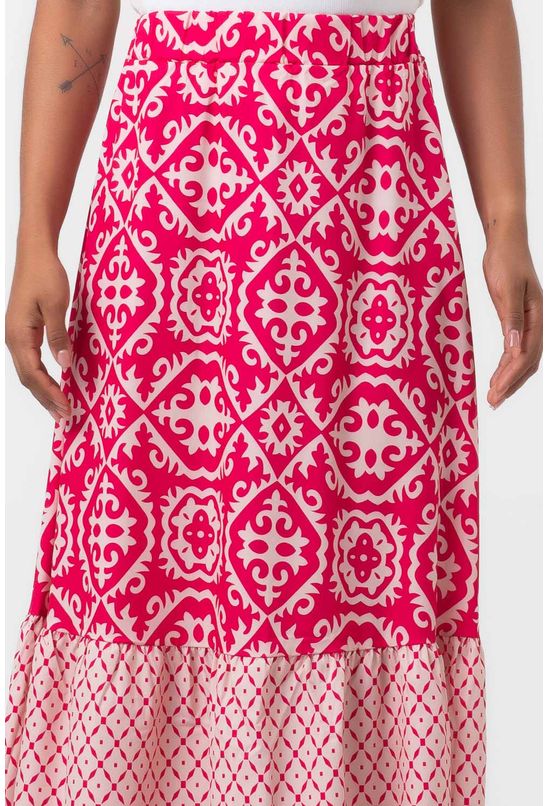 Saia longa cintura alta com estampa floral rosa-