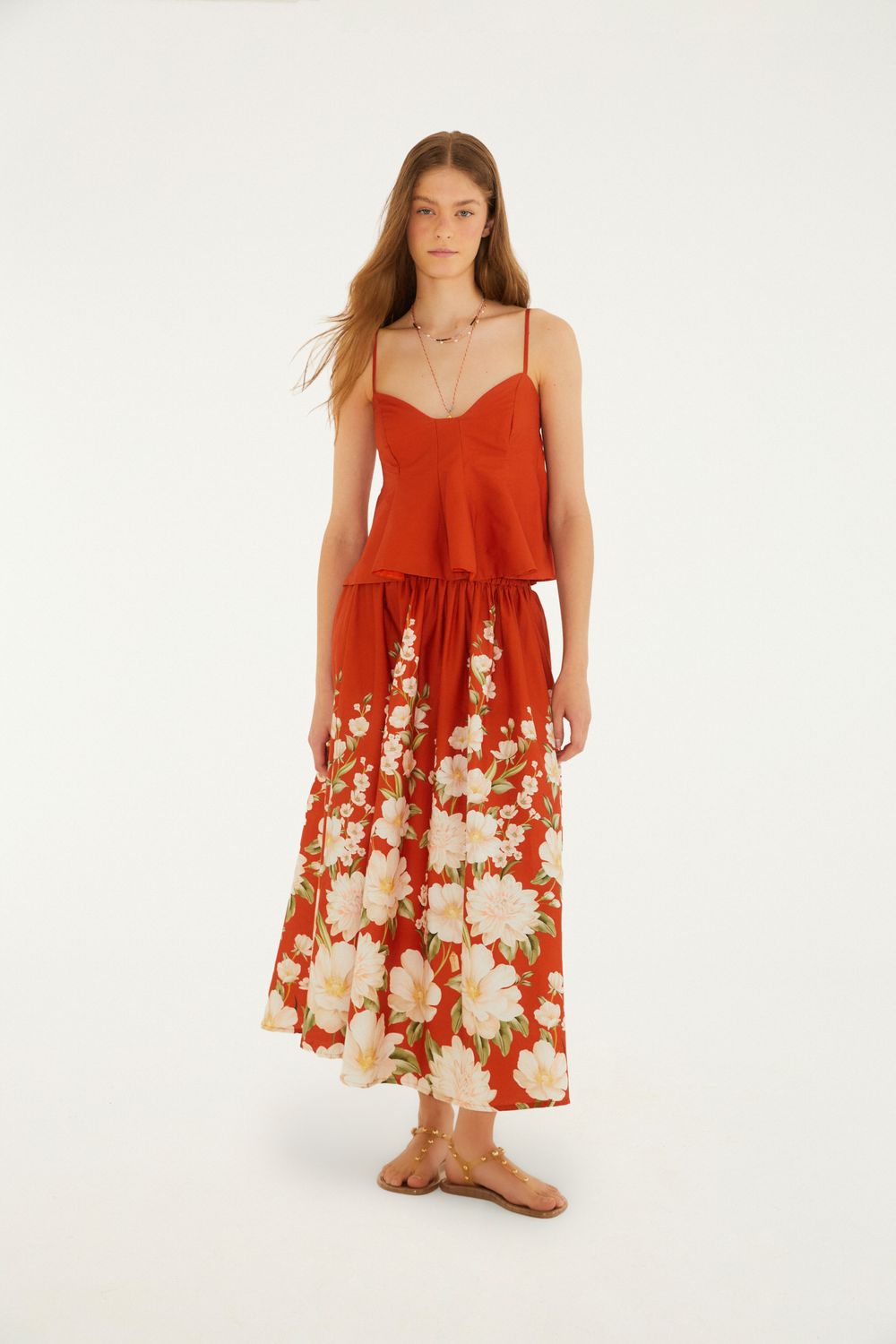 saia longa estampado gabrielle. apresenta um caimento fluido que eleva qualquer look, com ajuste na cintura proporcionando conforto e versatilidade. ideal para momentos casuais, eventos ao ar livre ou um passeio especial. aproveite a originalidade da FARM, vestindo brasilidade e charme. FARM RIO original - verão 26.-