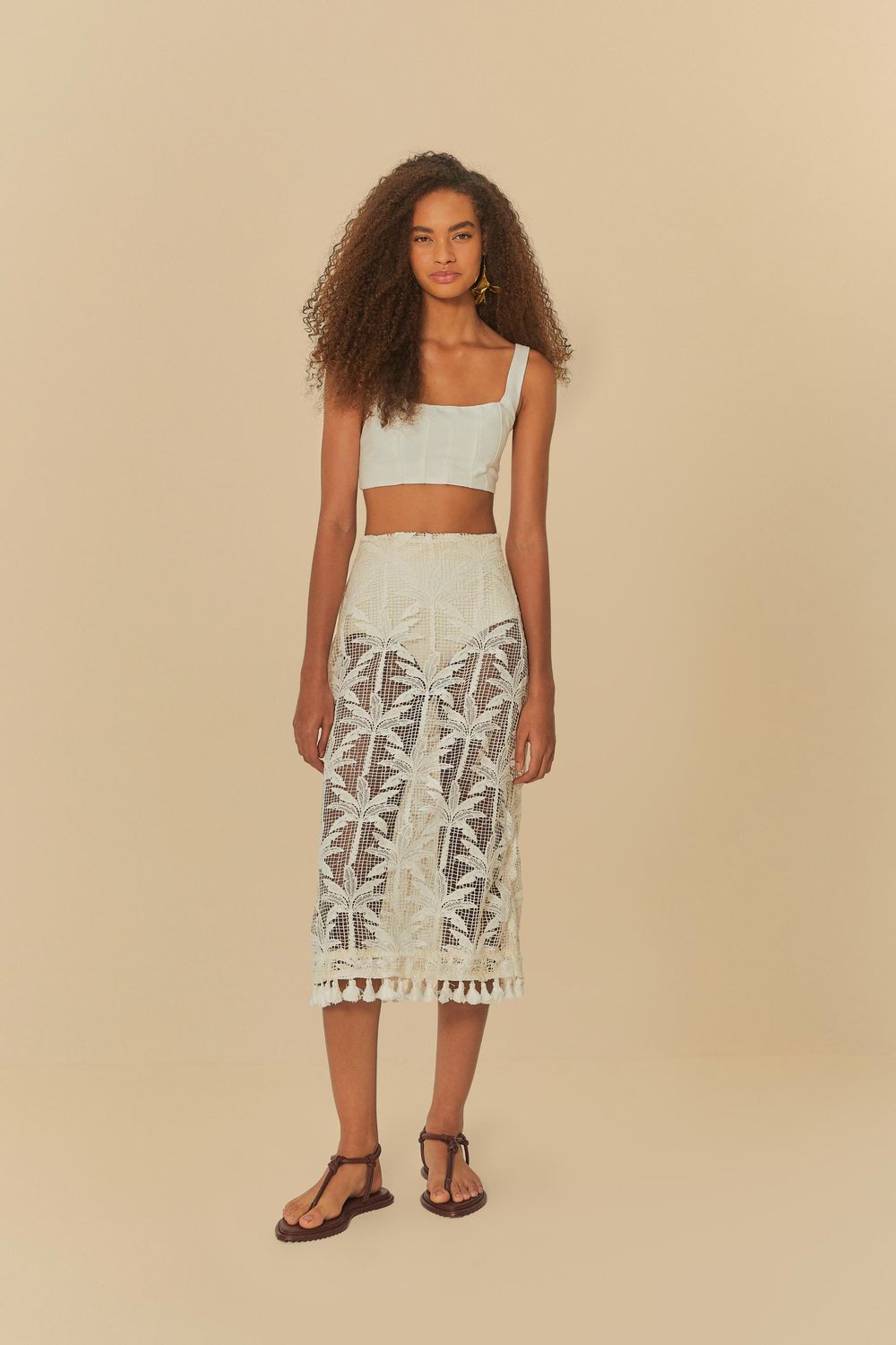 saia midi coqueiros. confeccionada em tecido leve, com comprimento midi que é ideal para diferentes ocasiões. possui cintura alta e fechamento por zíper na lateral, garantindo praticidade e estilo. detalhes tramados na barra completam o design com originalidade. perfeita para passeios casuais e momentos únicos à beira-mar. esta é uma peça exclusiva da coleção FARM RIO original - alto verão 25.-