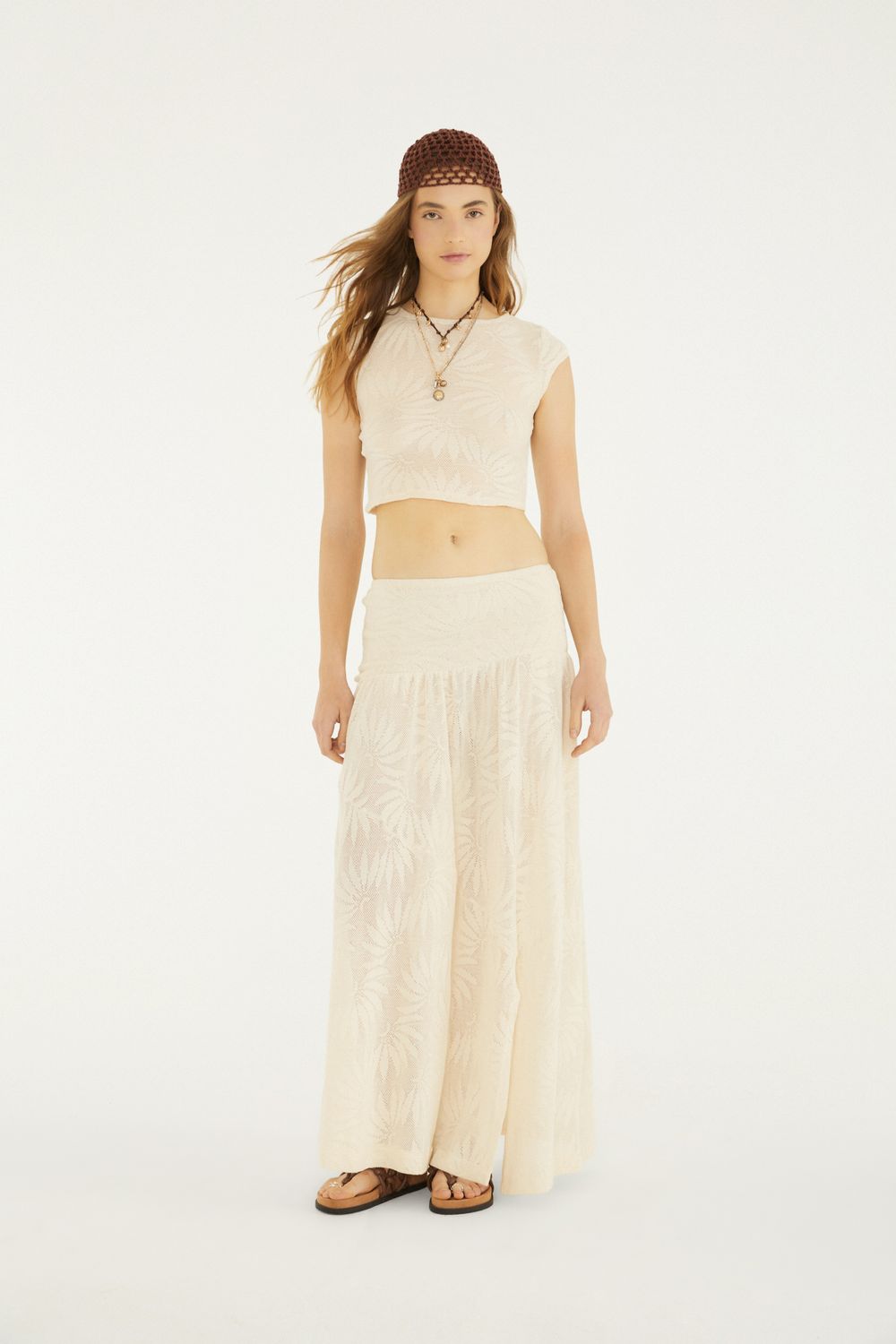 saia midi tricot. a modelagem fluida e o caimento leve proporcionam movimento e conforto em cada passo. com cintura alta e tecido texturizado, esta peça eleva o look com um toque artesanal e único. ideal para dias casuais ou eventos que pedem estilo despretensioso e marcante. FARM Rio, coleção Carioca - inverno 26.