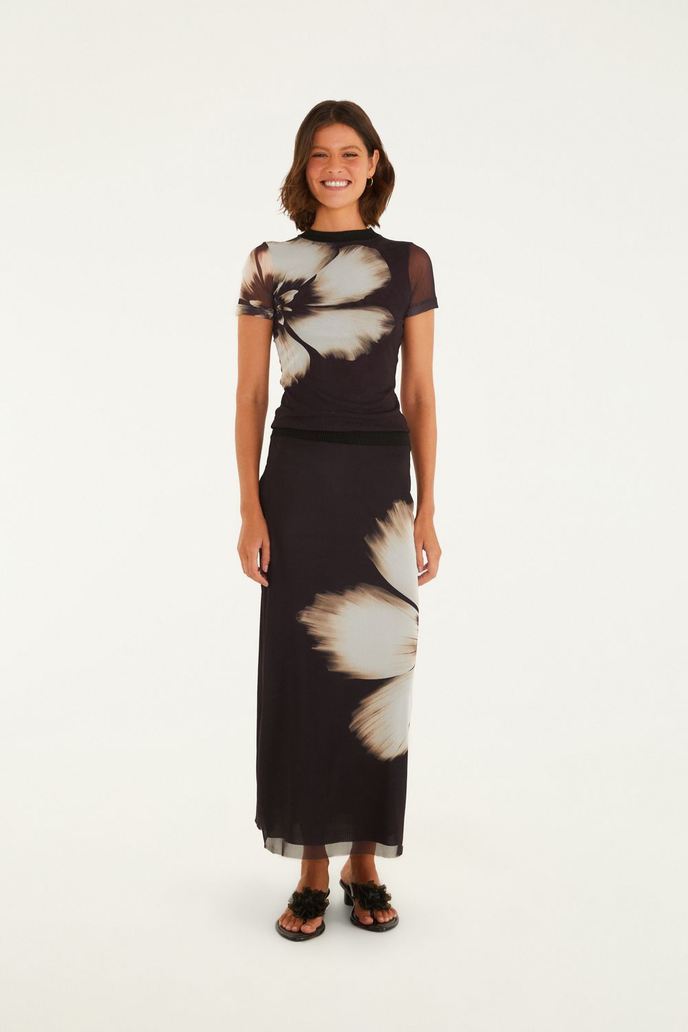 Saia Midi Tule Estampada Maya