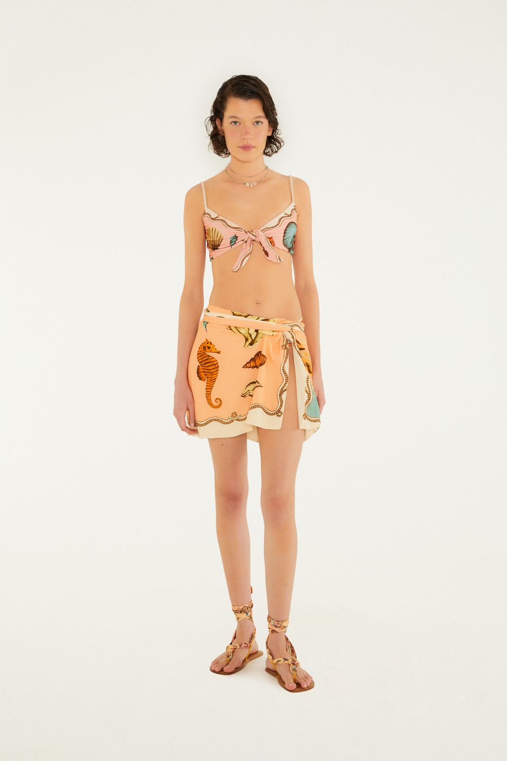 saia pareô souvenir litoral. com amarração lateral ajustável, essa peça traz liberdade e fluidez para o seu visual. a modelagem prática faz dela uma escolha perfeita para um passeio à beira-mar ou um encontro casual. um item versátil que se adapta ao seu estilo, conferindo um toque de originalidade. FARM RIO original - alto verão 26.-