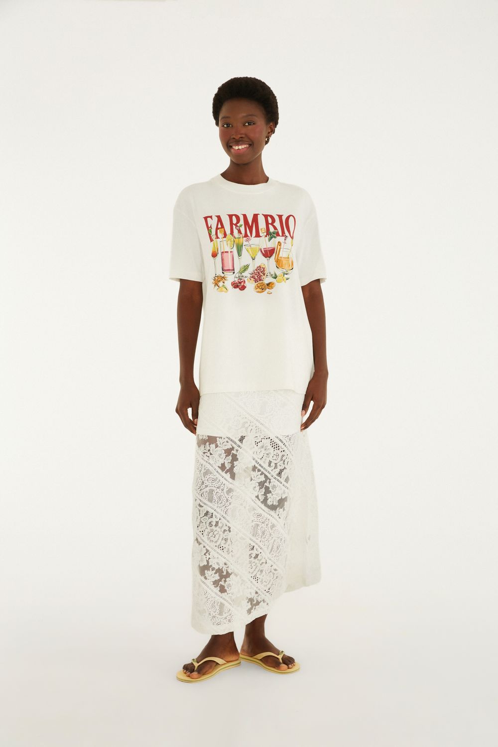 saia patch de renda traz uma combinação única de texturas com modelagem que valoriza o movimento. o corte longo permite um caimento fluido e sofisticado em ocasiões casuais ou momentos de lazer. os detalhes de renda em patchwork proporcionam um toque especial, ideal para um look autêntico e cheio de personalidade. FARM RIO original - alto verão 26.-