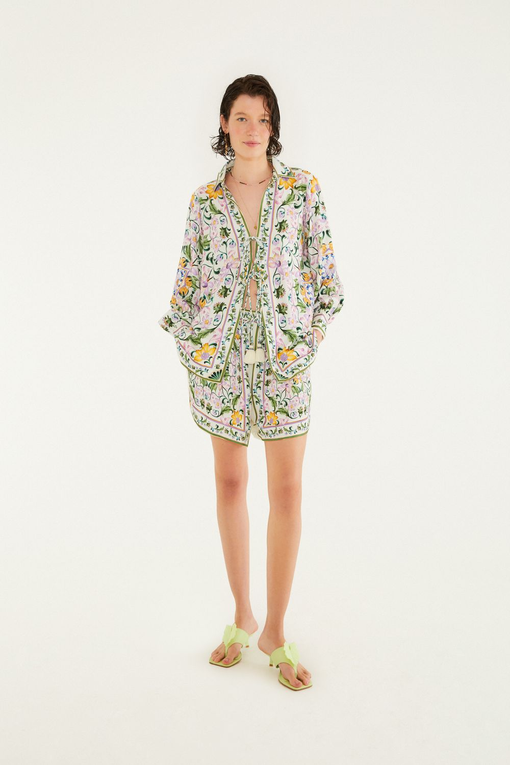 short estampado azulejaria. possui cintura ajustável com elástico e cordão de amarração, proporcionando conforto e praticidade. acabamento com barras dobradas que adicionam um toque charmoso e versátil. ideal para dias ensolarados ou passeios descontraídos. com este short, cada momento ganha cor e vida. FARM RIO original -alto verão 26.-