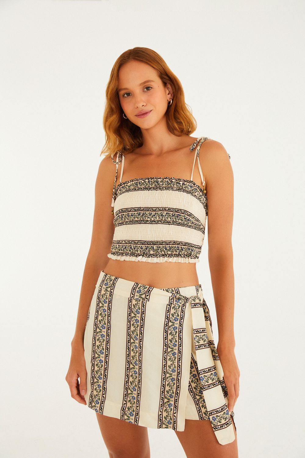 Short Saia Estampado Jardim Chintz Lenço