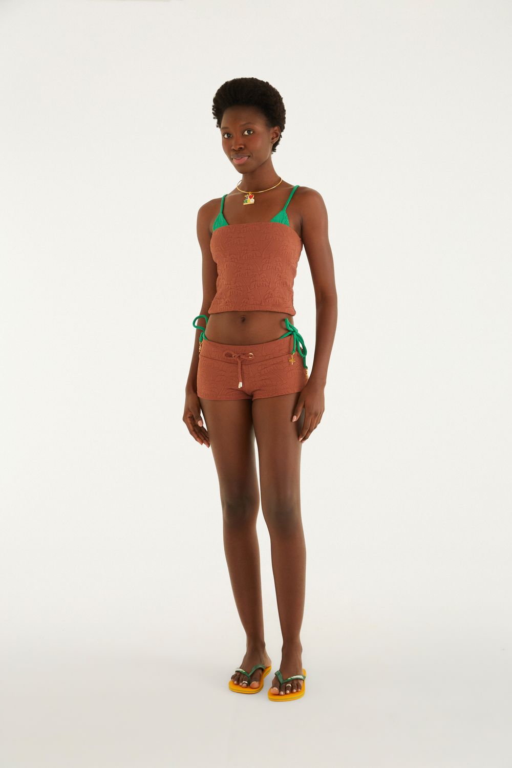 short textura coqueiro. com modelagem ajustada e cós com amarração delicada, este short eleva o visual casual com seu toque único. a trama texturizada traz dimensão, enquanto o corte favorece o conforto em dias relaxantes. perfeito para momentos descontraídos ou passeios à beira-mar. peça essencial para quem busca estilo autêntico. FARM Rio, coleção Carioca - inverno 26.-