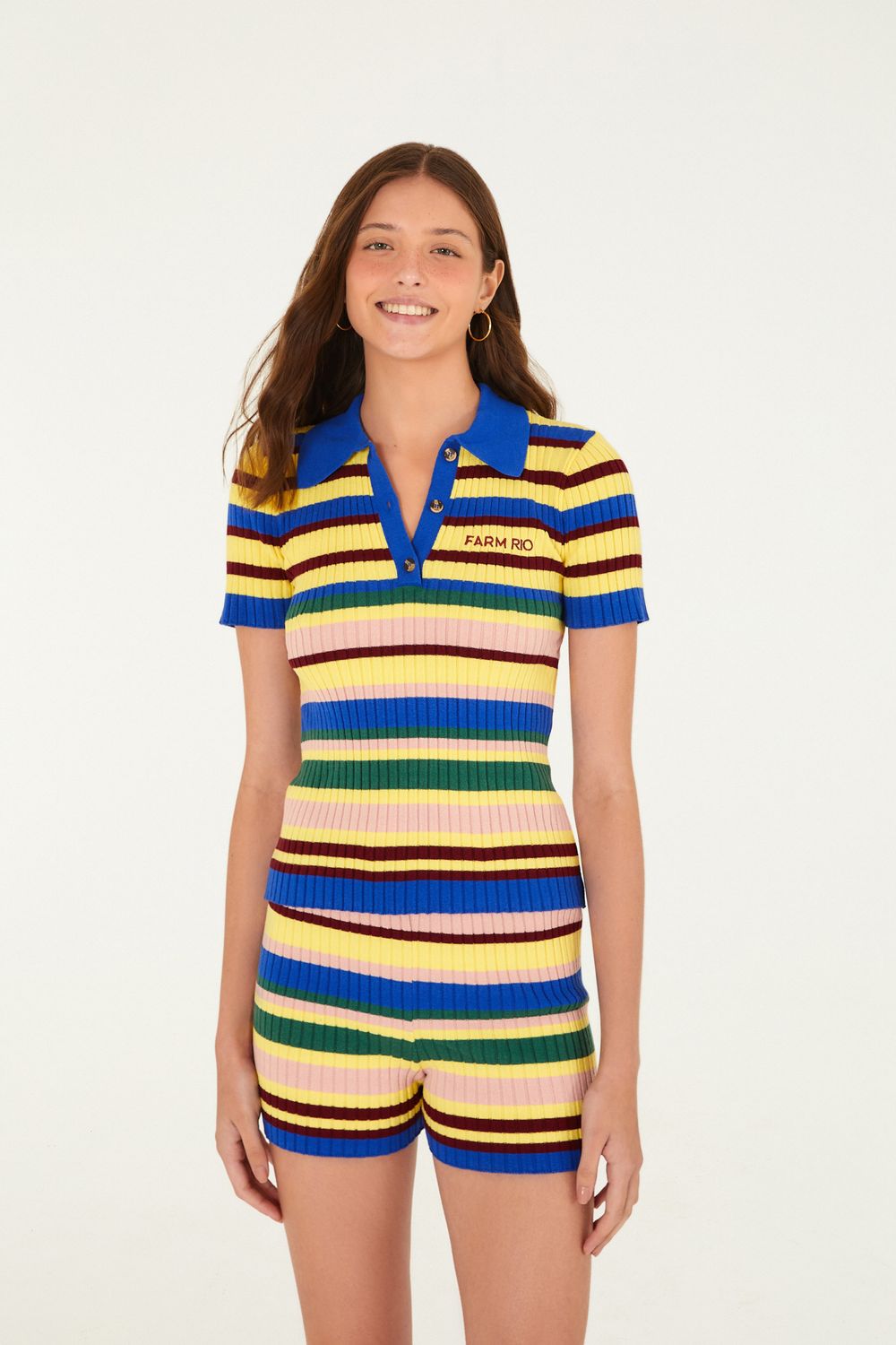 short tricot listra bananeira. oferece praticidade com seu design leve e casual, ideal para dias ensolarados e encontros descontraídos. o corte possui cintura alta e modelagem ajustável, garantindo conforto e movimento. a malha é macia e suas listras adicionam um toque de alegria ao look. perfeito para passeios ao ar livre ou momentos de lazer. FARM Rio, coleção Carioca - inverno 26.-