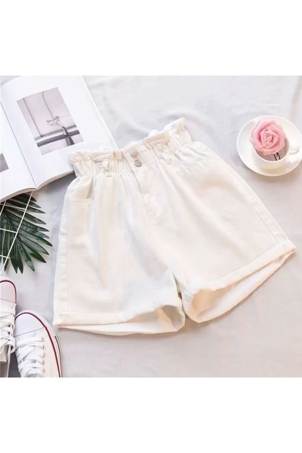 Shorts jeans cintura alta solto branco