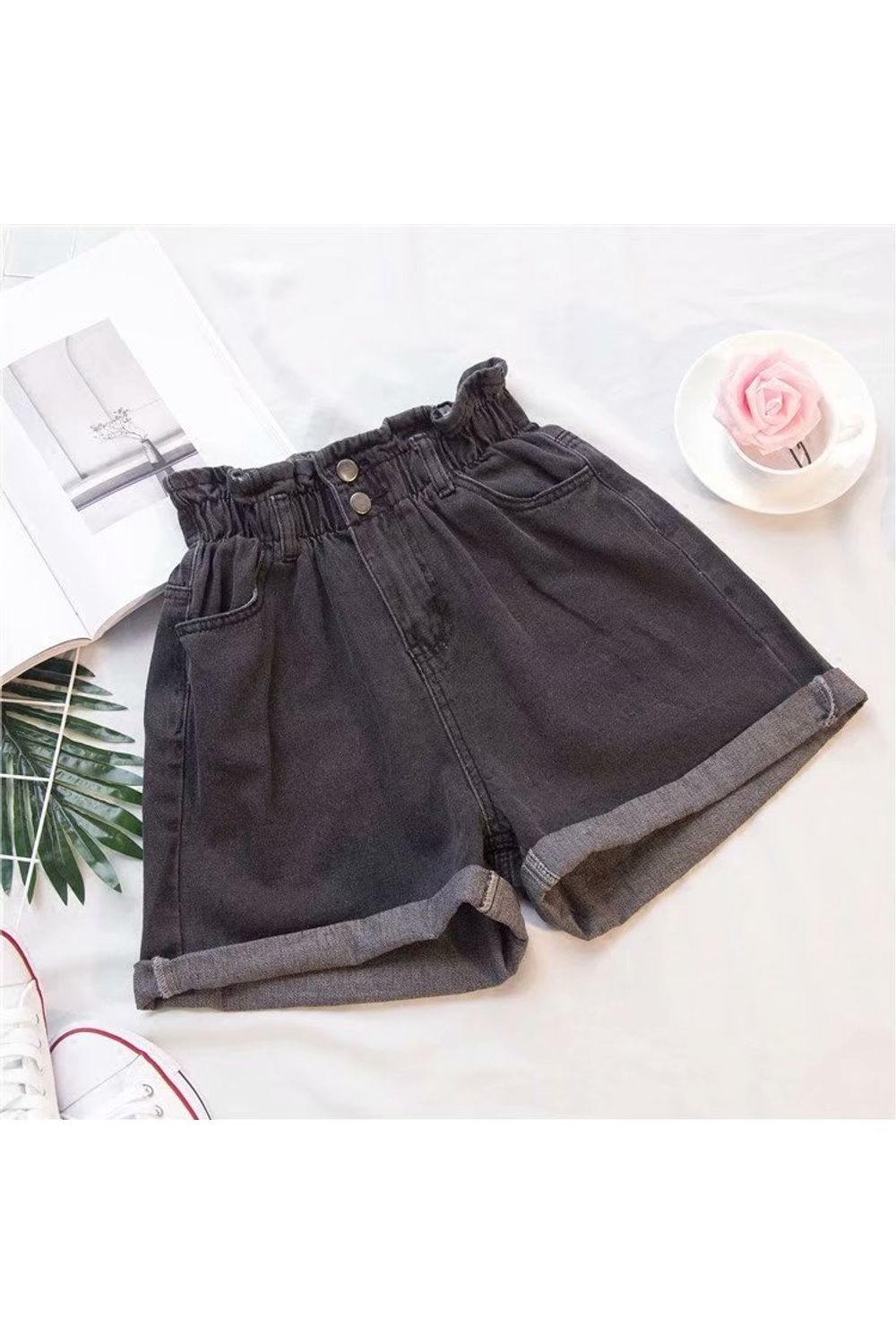 Shorts jeans cintura alta solto preto