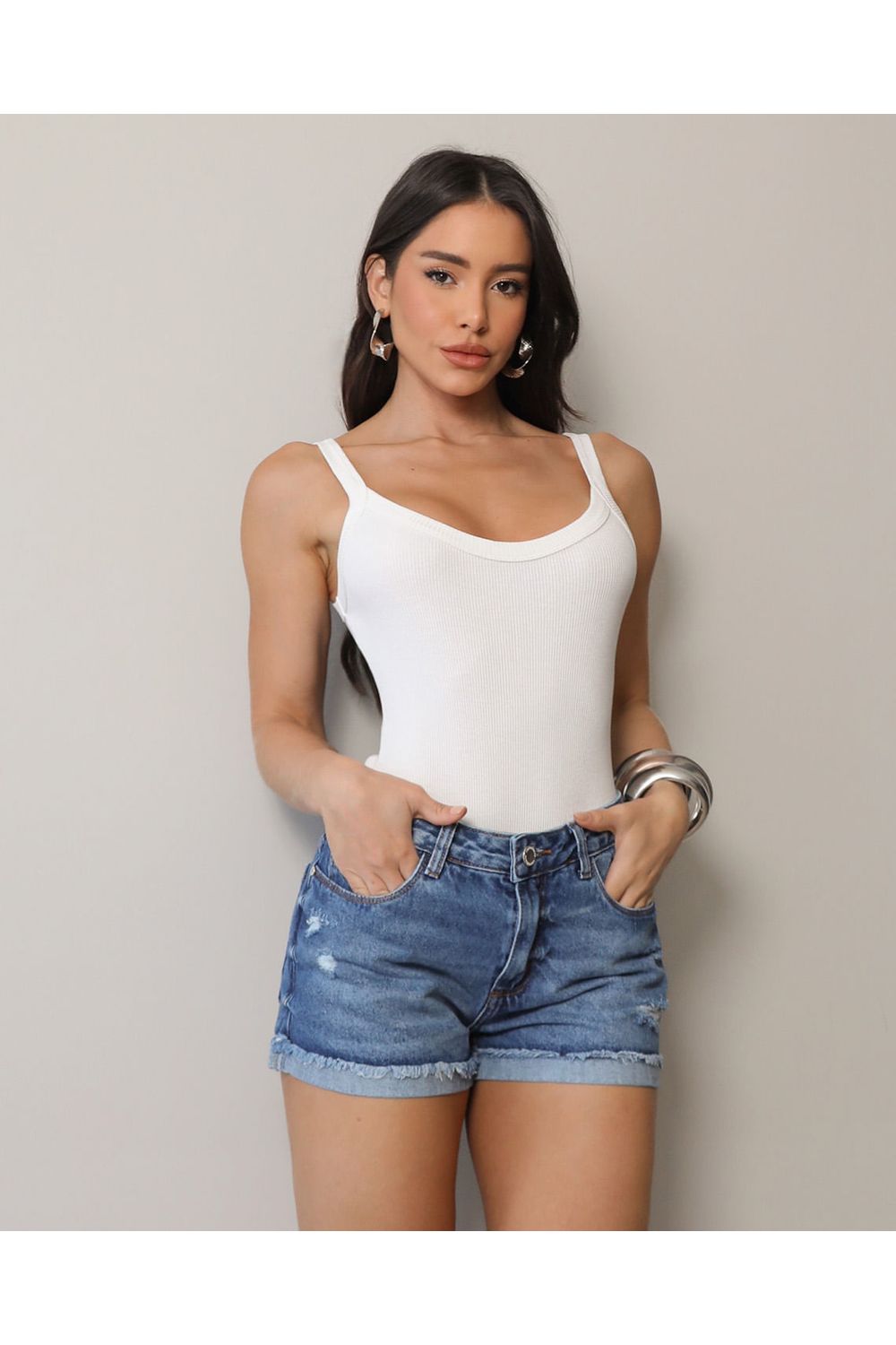 Shorts Jeans Feminino com Barra Virada e Desfiada 25020 Sky Escuro