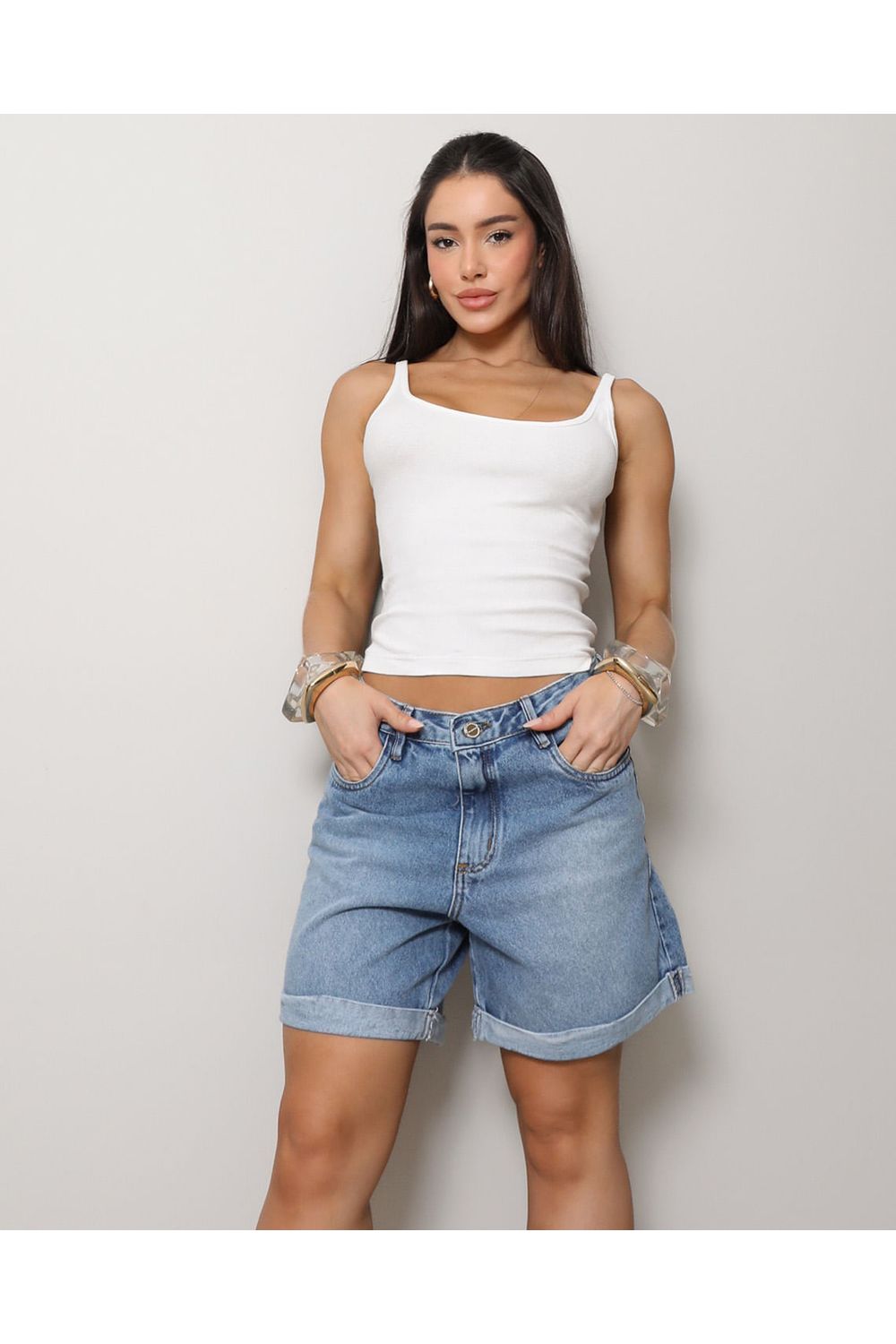 Shorts Jeans Mom Feminino com Barra Virada 25071 Sky Médio