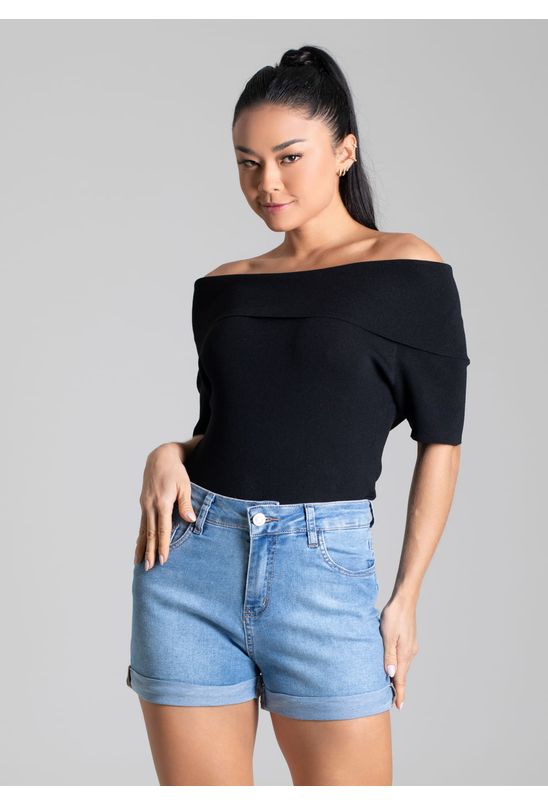 Shorts confeccionada em jeans. Modelagem soltinho. Cintura média Fechamento com botão e zíper Bolsos frontais e bolsos traseiros funcionais bolsos laterais cargo Barra dobrada Tecido: Jeans Tipo de lavagem: Azul Cor: Azul-