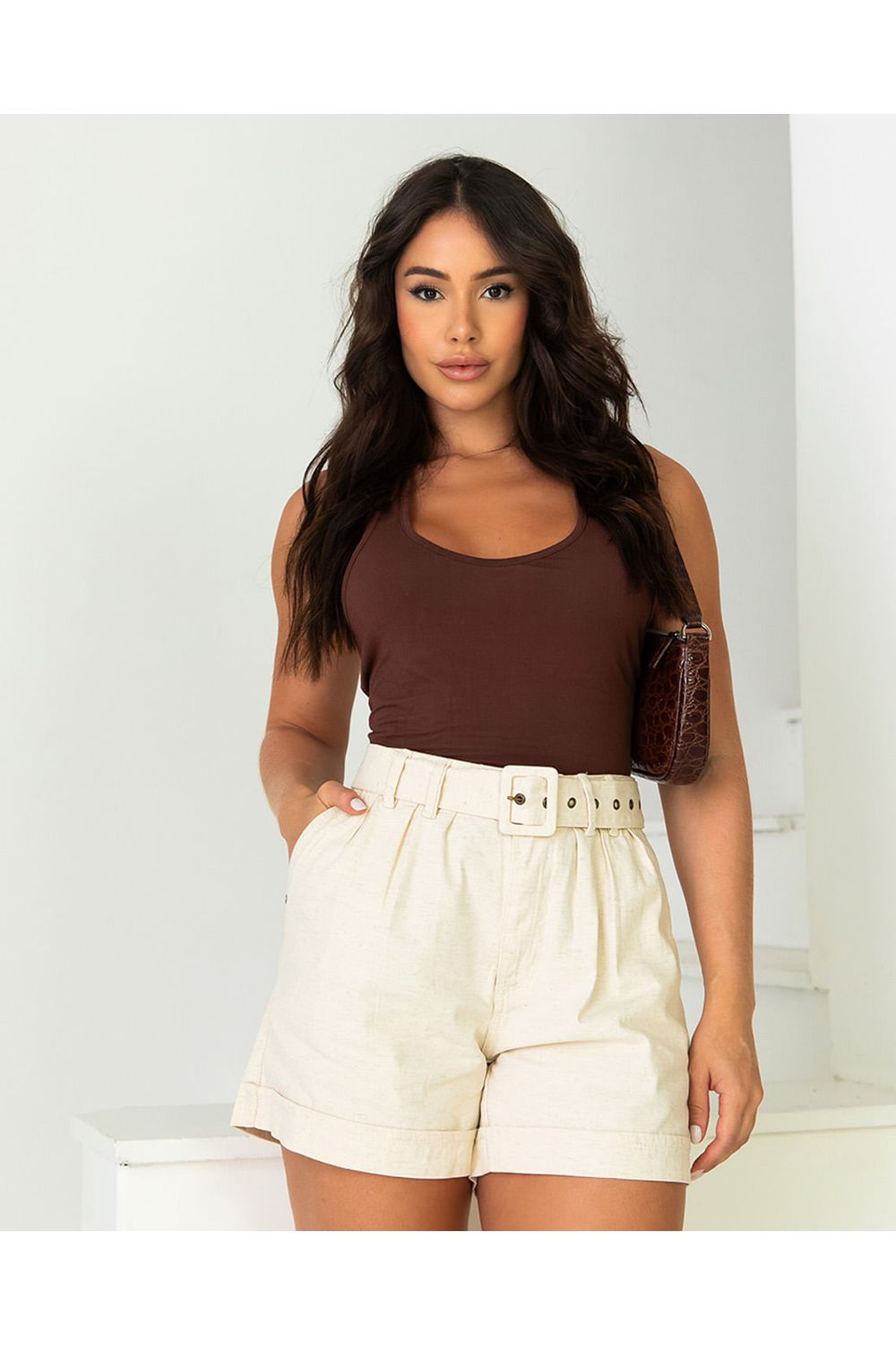 Shorts Linho Mom Feminino Cintura Alta com Cinto 24267 Linho