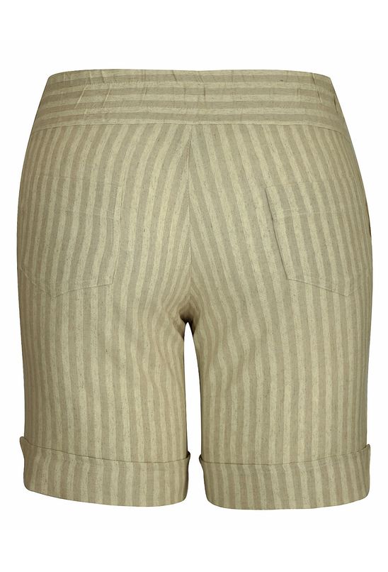 Shorts em Linho Listrado - Bege. Cintura alta.